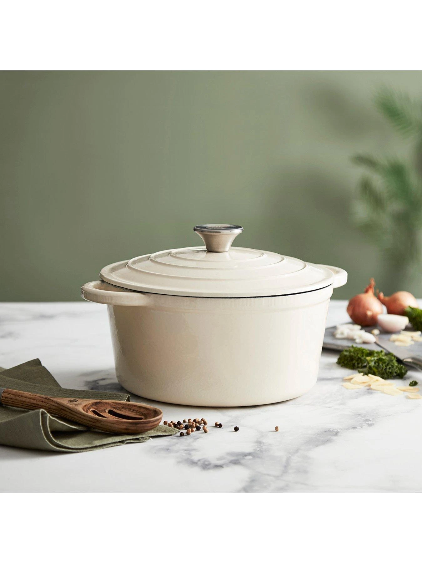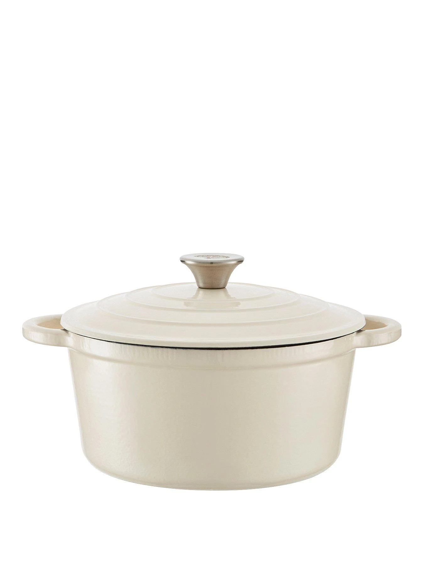 Tower Barbary & Oak 24 cm Cast Iron Round Casserole – Camembert Cream