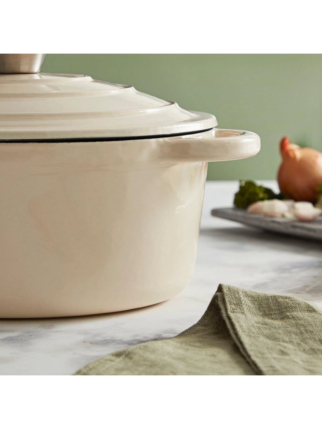 The enamel interior helps to prevent food from sticking or burning inside while also making it easy to clean after whipping up a delicious dish. In a camembert cream colourway, this casserole is finished with ergonomic handles for a safe, comfortable grip.