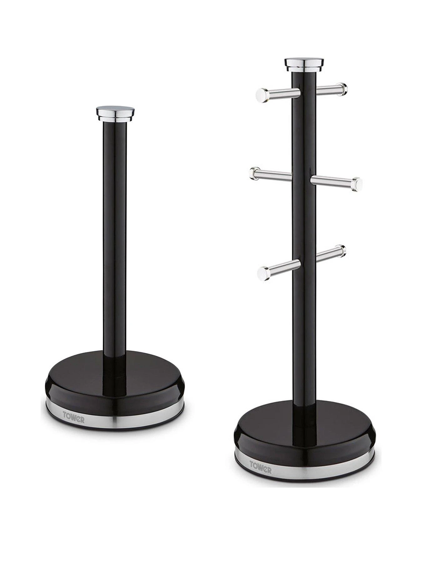 This Tower Belle mug tree and towel pole set provides an elegant storage solution for your cups and kitchen roll. The pair features a co-ordinating Parisian design with bold colourways and stylish chrome highlights to complement your existing kitchen décor.