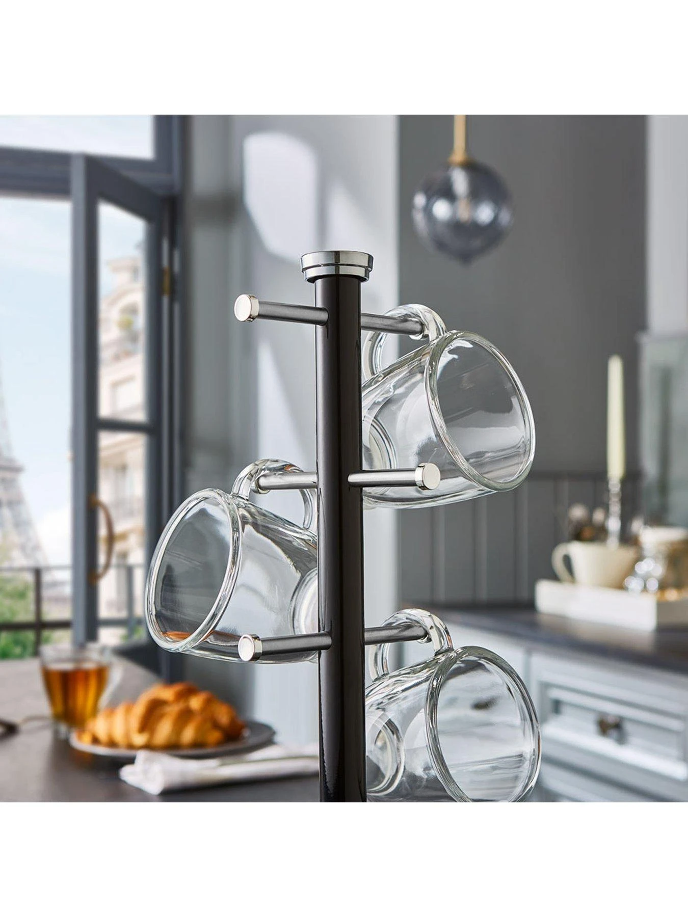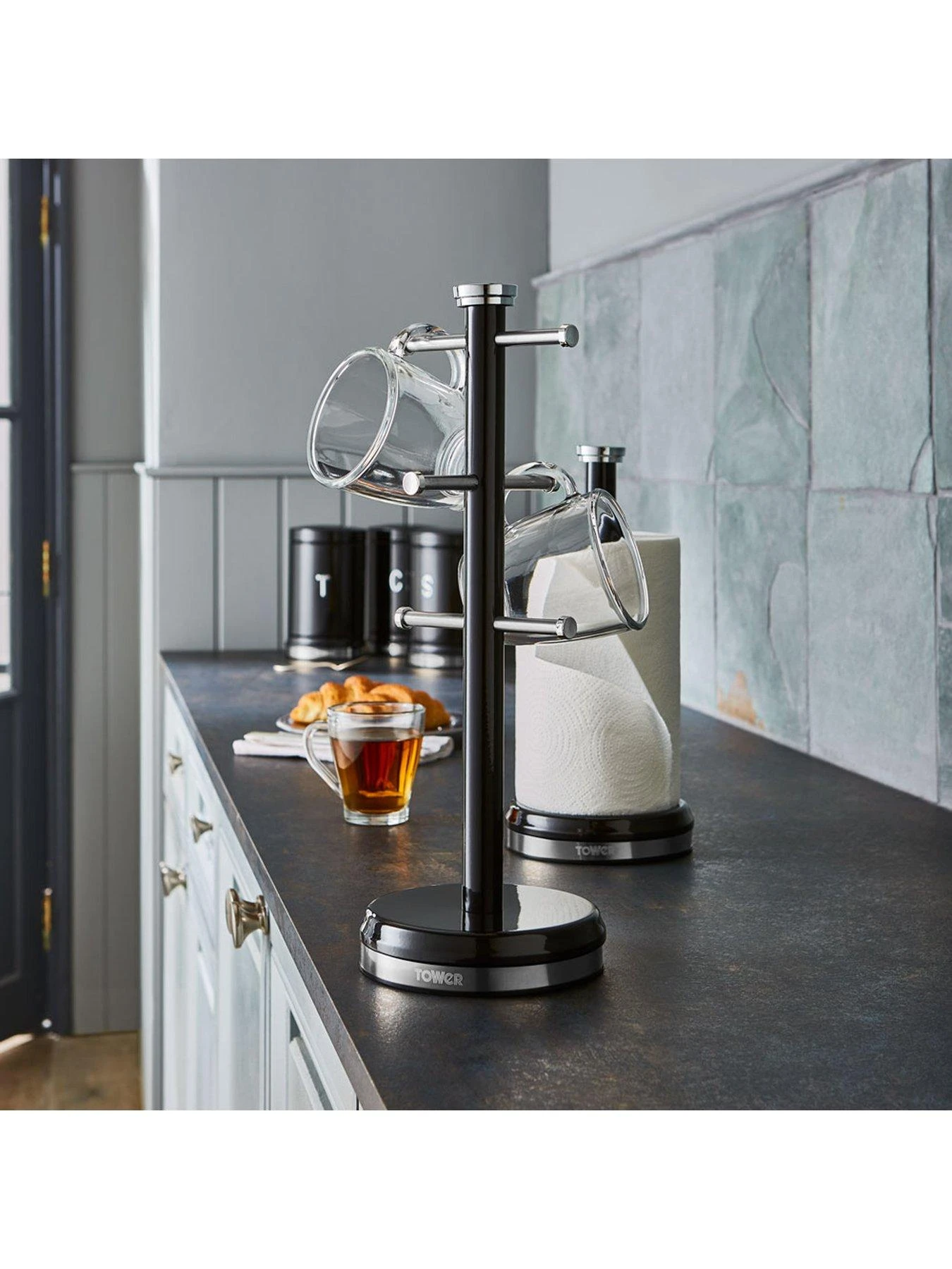 The mug tree’s strong stainless steel branches with stoppers at the end offer a secure hold for up to 6 cups at once, allowing you to present your favourite designs neatly beside your kettle. The towel pole is able to comfortably fit any standard-size kitchen roll, keeping your paper towels close-by ready for the next clean-up.