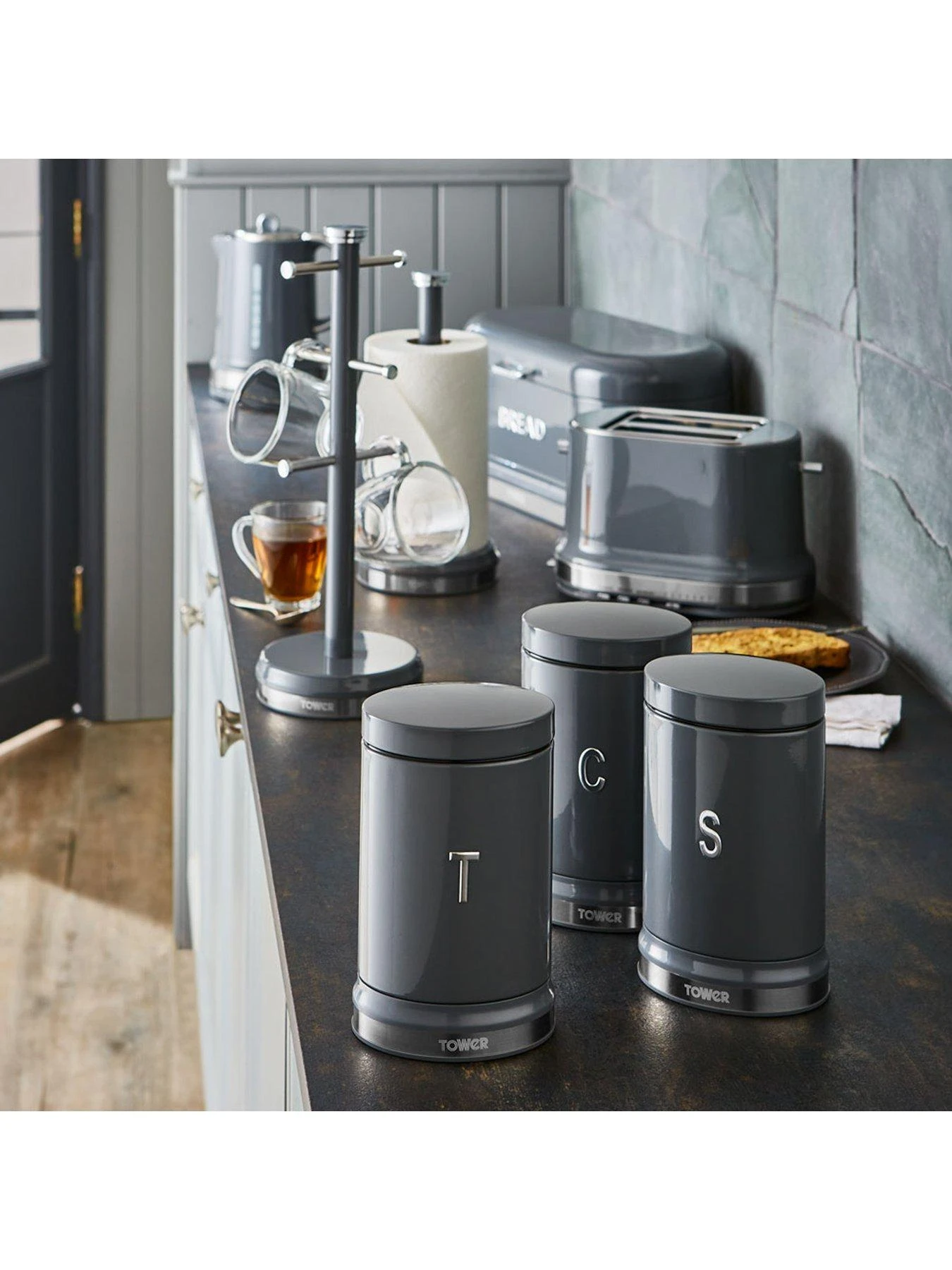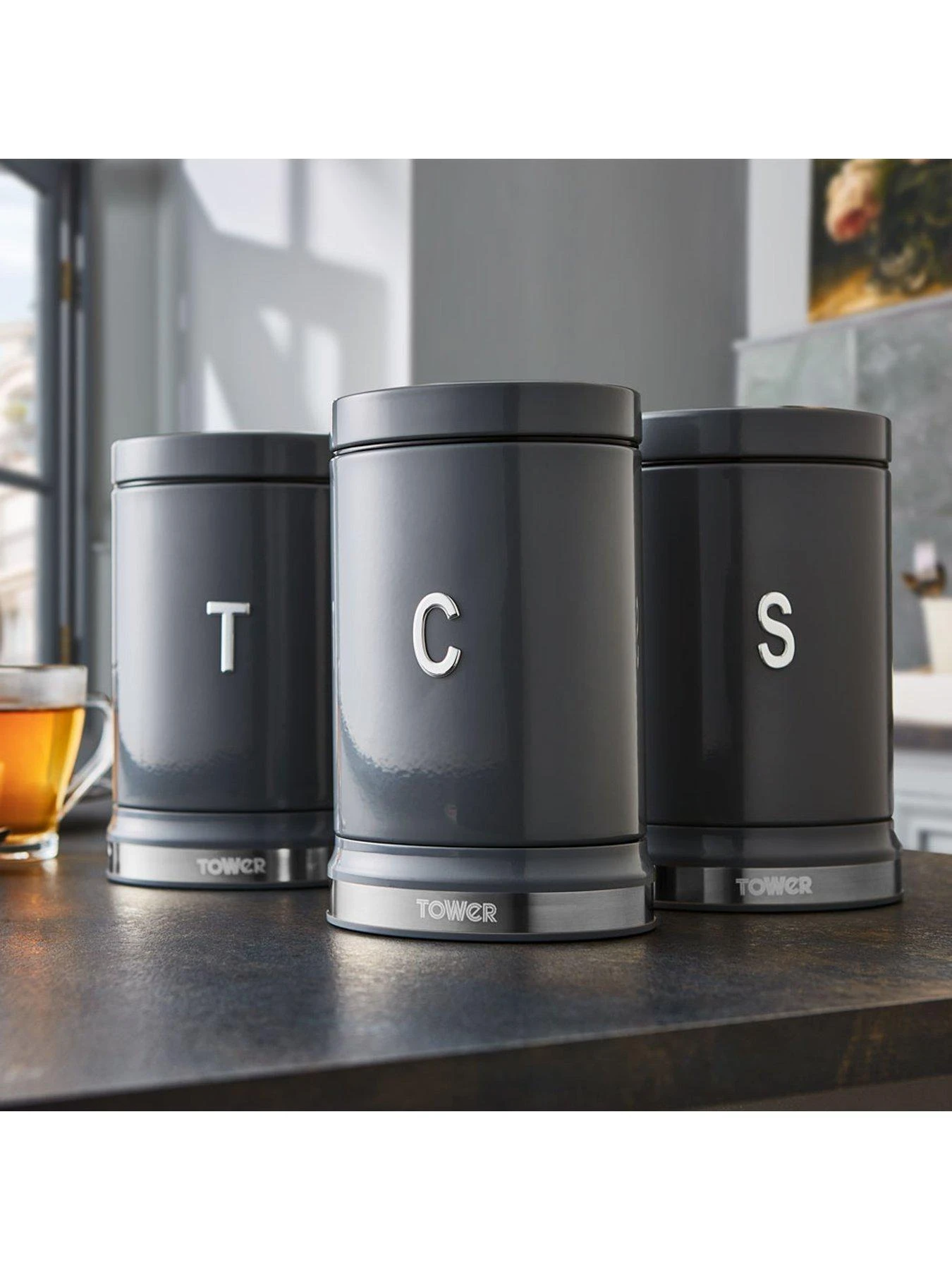 Perfect for storing cuppa essentials, the canisters are decorated with embossed ‘T/C/S’ chrome lettering, keeping your kitchen neatly organised with indication to the contents inside. Each canister has a 1.3 litre capacity to store up to 50 teabags, 1kg of coffee and 1kg of sugar neatly on your kitchen countertop, and its small footprint saves space too.