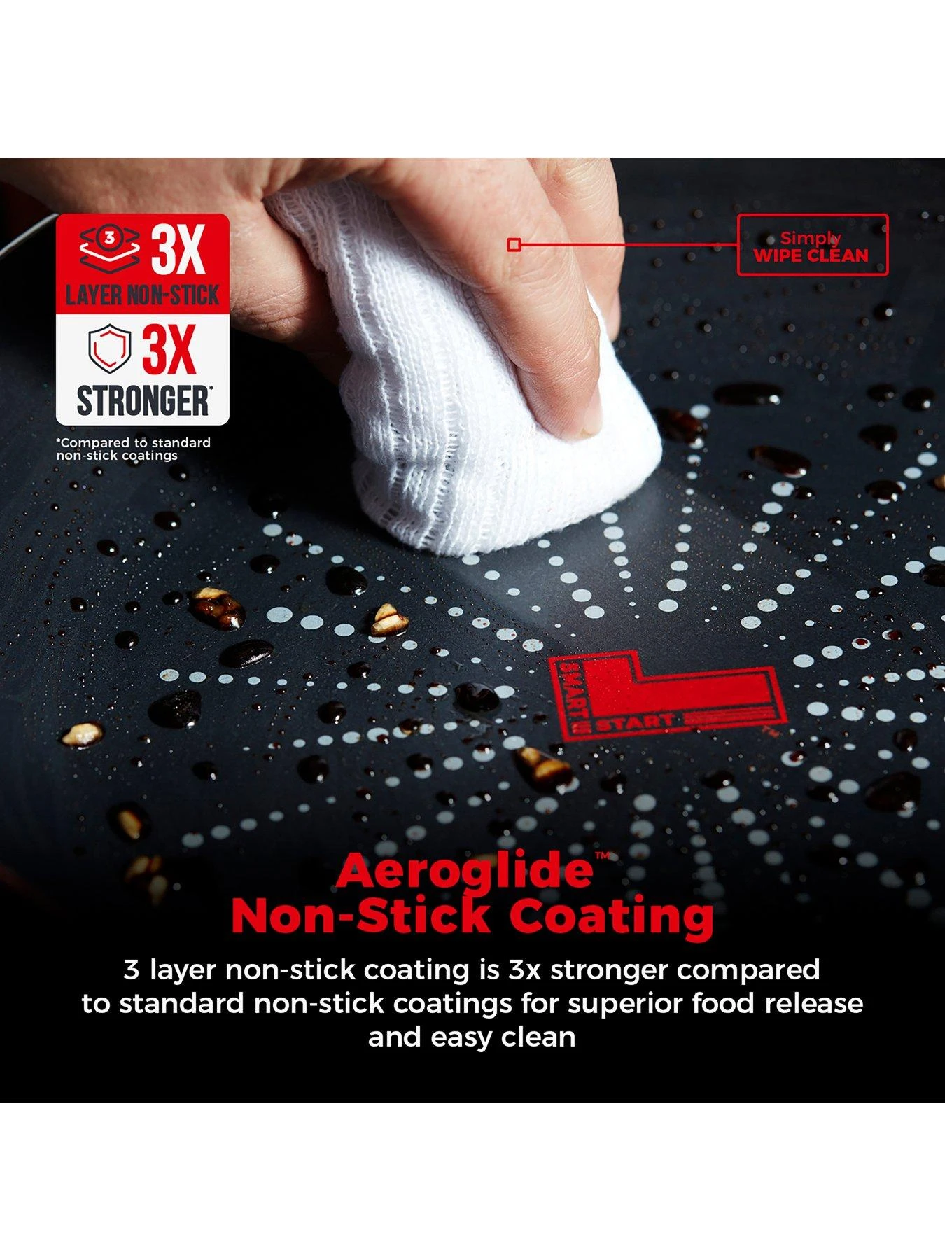 - Aeroglide non-stick coating has a base layer, abrasion layer and heat resistant exterior coat. 3x stronger than other coatings for an easy clean.