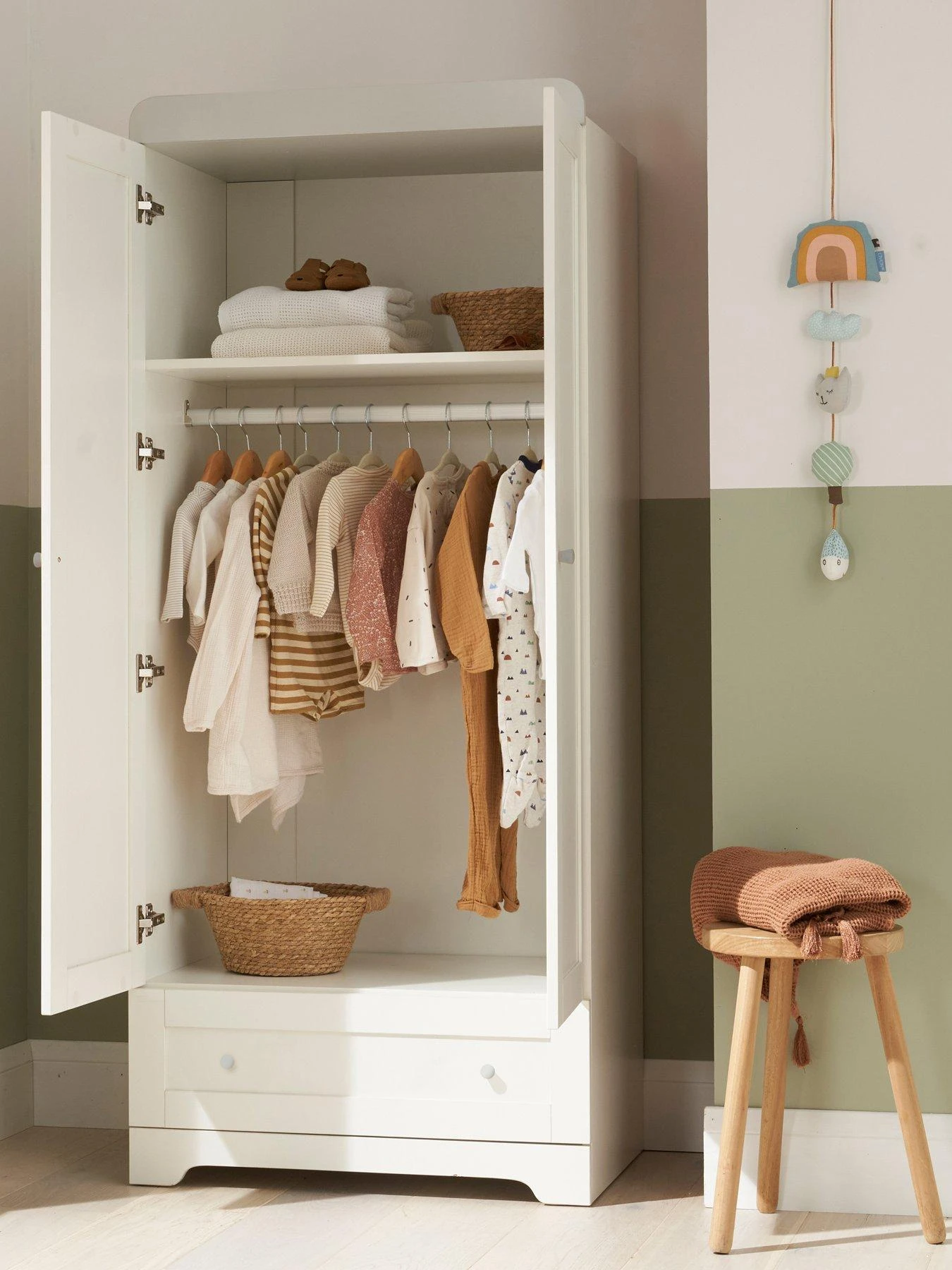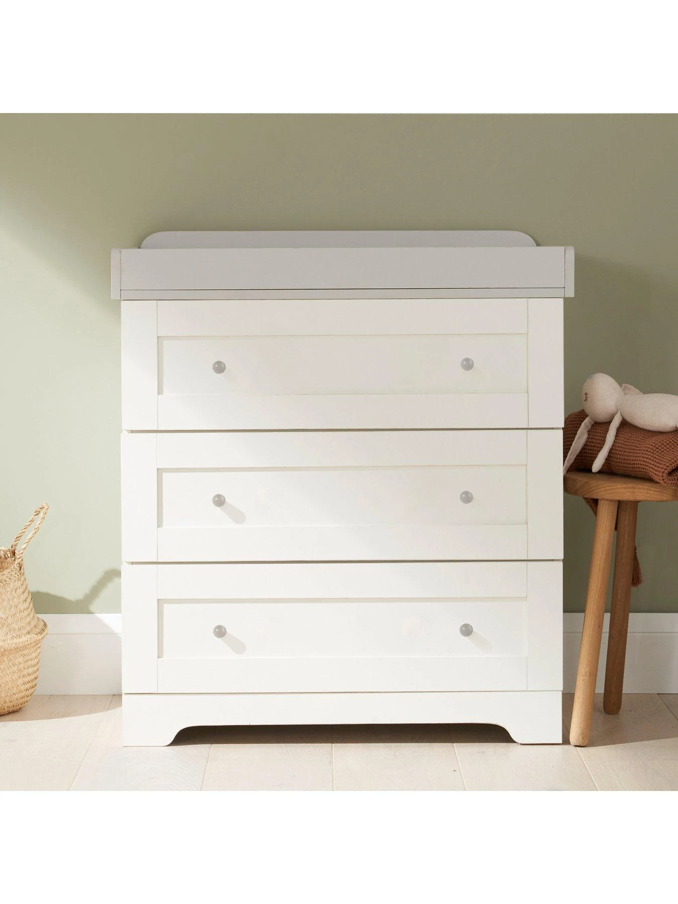 The Rio 5 Piece Nursery Furniture Set offers contemporary style in fresh white and grey, along with plenty of affordable storage. This set includes a full-size Rio Cot Bed, handy Cot Top Changer, nursery Chest of Drawers and Wardrobe.