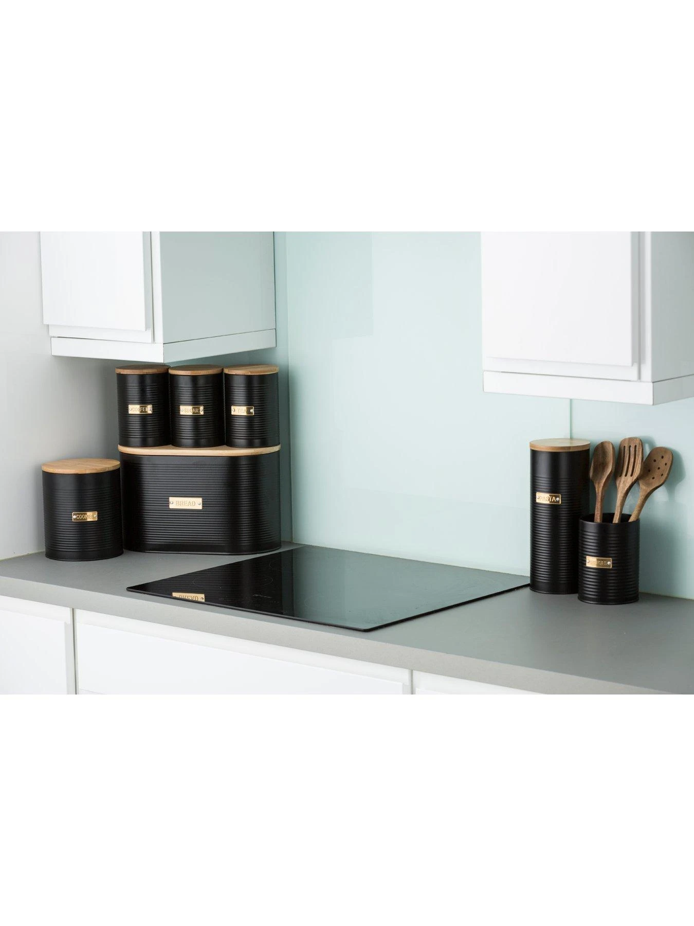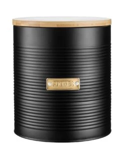 Made from hardwearing carbon steel, it features an attractive ribbed design and is finished in a striking ebony colour scheme. A golden-toned plate across the front reads cookies, and the bamboo lid is finished with a silicone seal to keep your biscuits fresh.