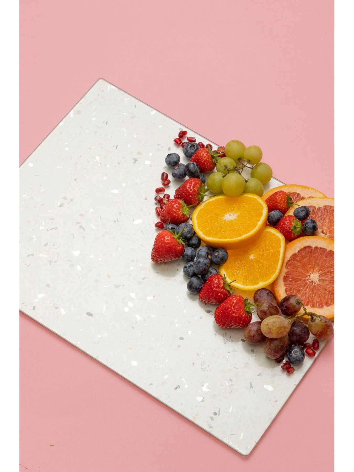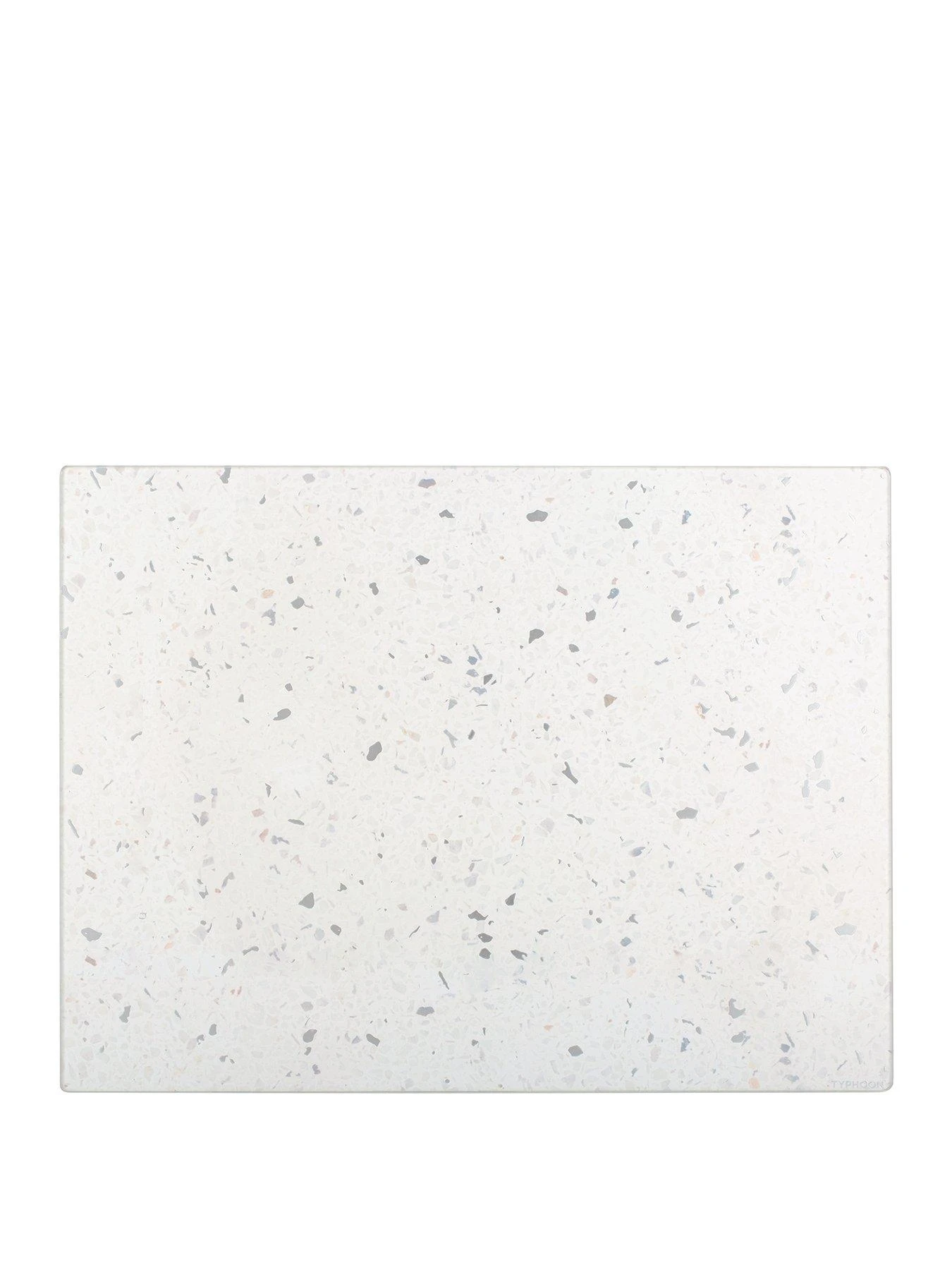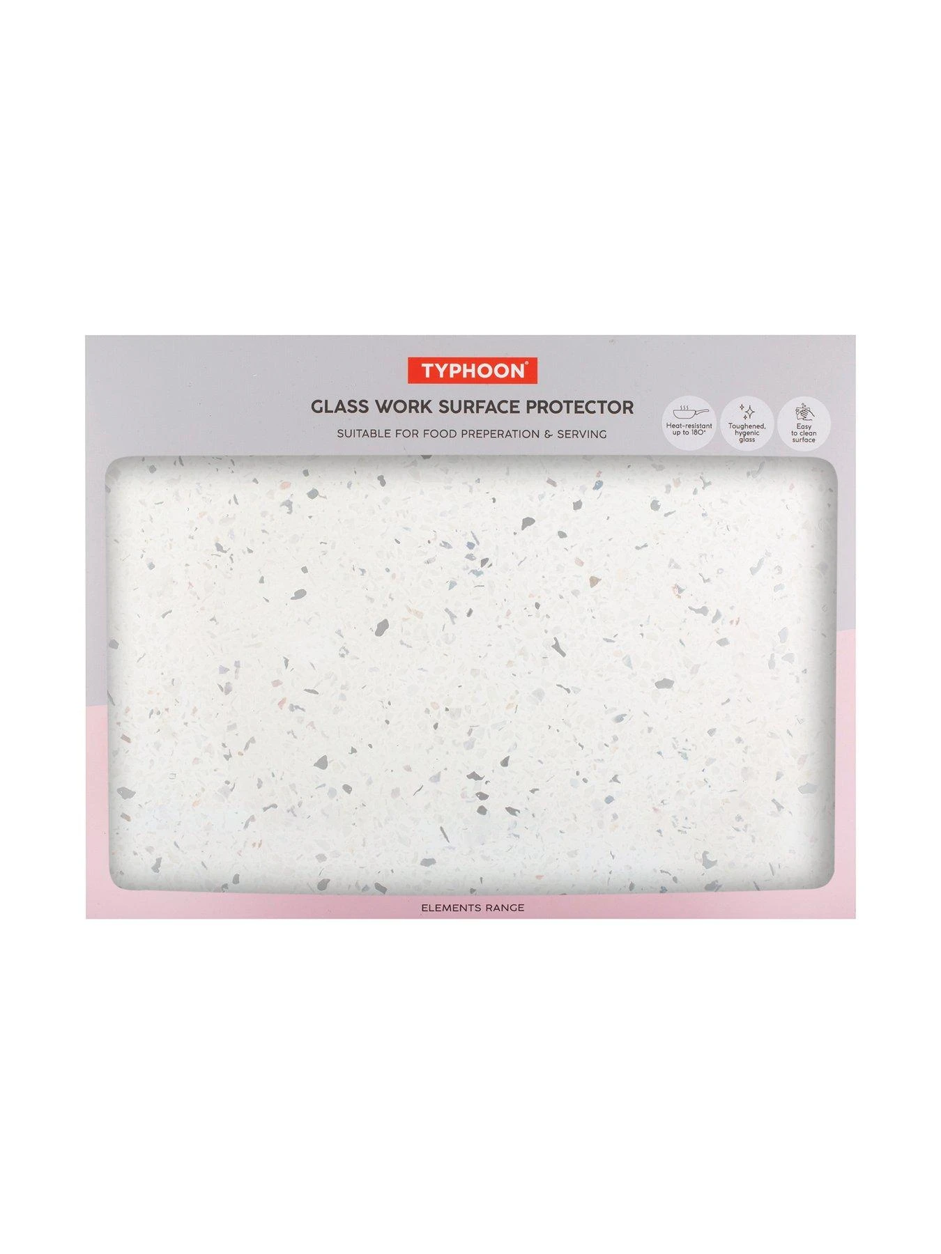 The Typhoon Elements Quartz Effect Glass Work Surface Protector is both practical and versatile as it can be used to prepare meals, protect work surfaces, and for placing hot pans and dishes. With a beautiful, eye-catching quartz print, the flecks of mirror sparkle in the light, mimicking the effect of natural quartz material. The non-slip feet give a stable and secure contact while protecting surfaces from scratches. Strong and durable, this Protector is made from tempered glass which is odour and stain resistant and can withstand up to 180° of heat. Easy to clean, the board is perfect for serving appetizers, desserts, or charcuterie and will add an elegant touch to your next dinner party.