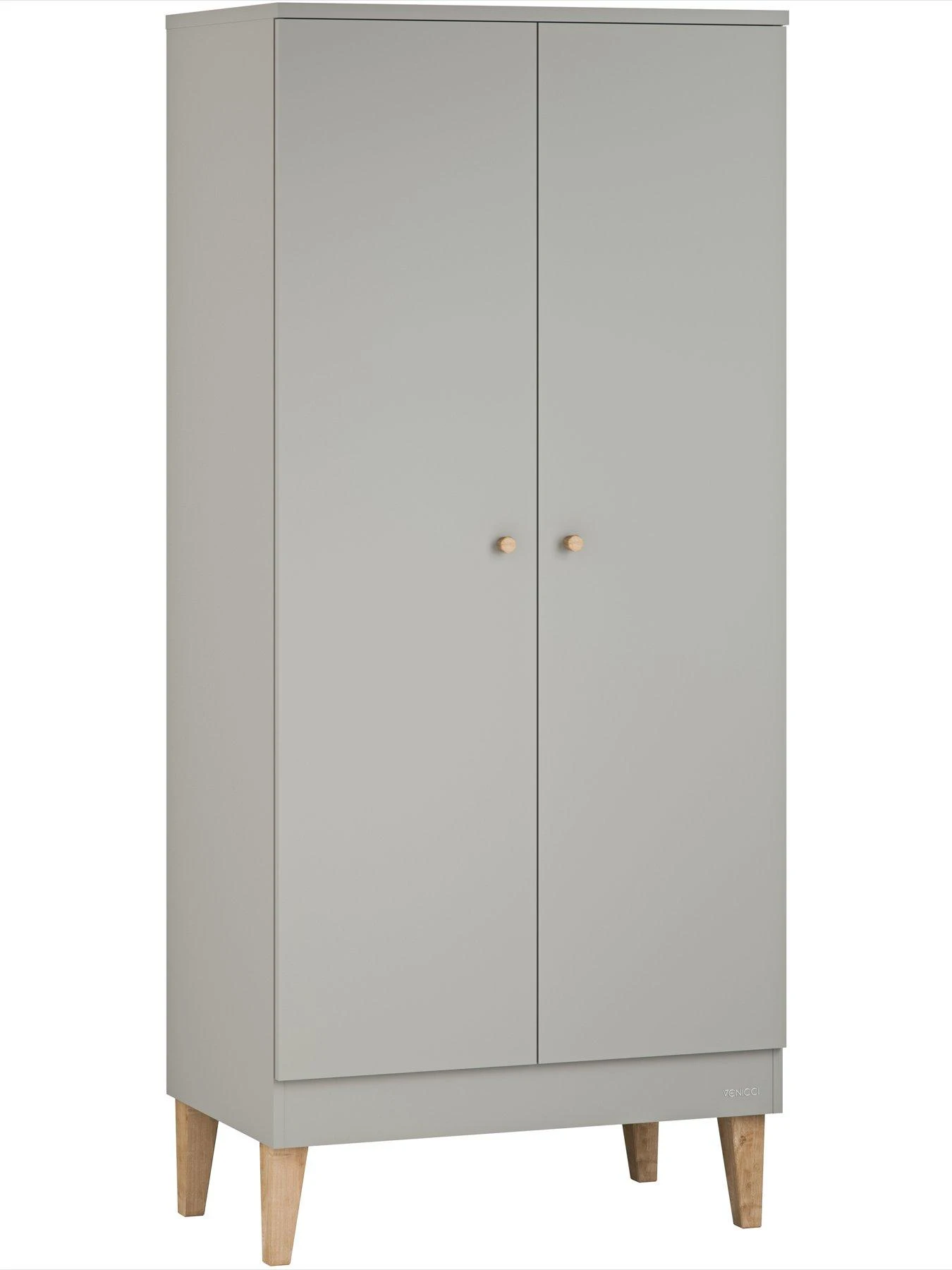 Thie modern double-door Saluzzo Wardrobe is made with a matt finish and subtle contrasting varnished oak handles and legs. A special layer protects the furniture from moisture and scratches and makes it easy to dust. The wardrobe interior has been equipped with two full-width hanging rails and shelves, which allow you to accommodate all of your little one’s most adorable outfits.