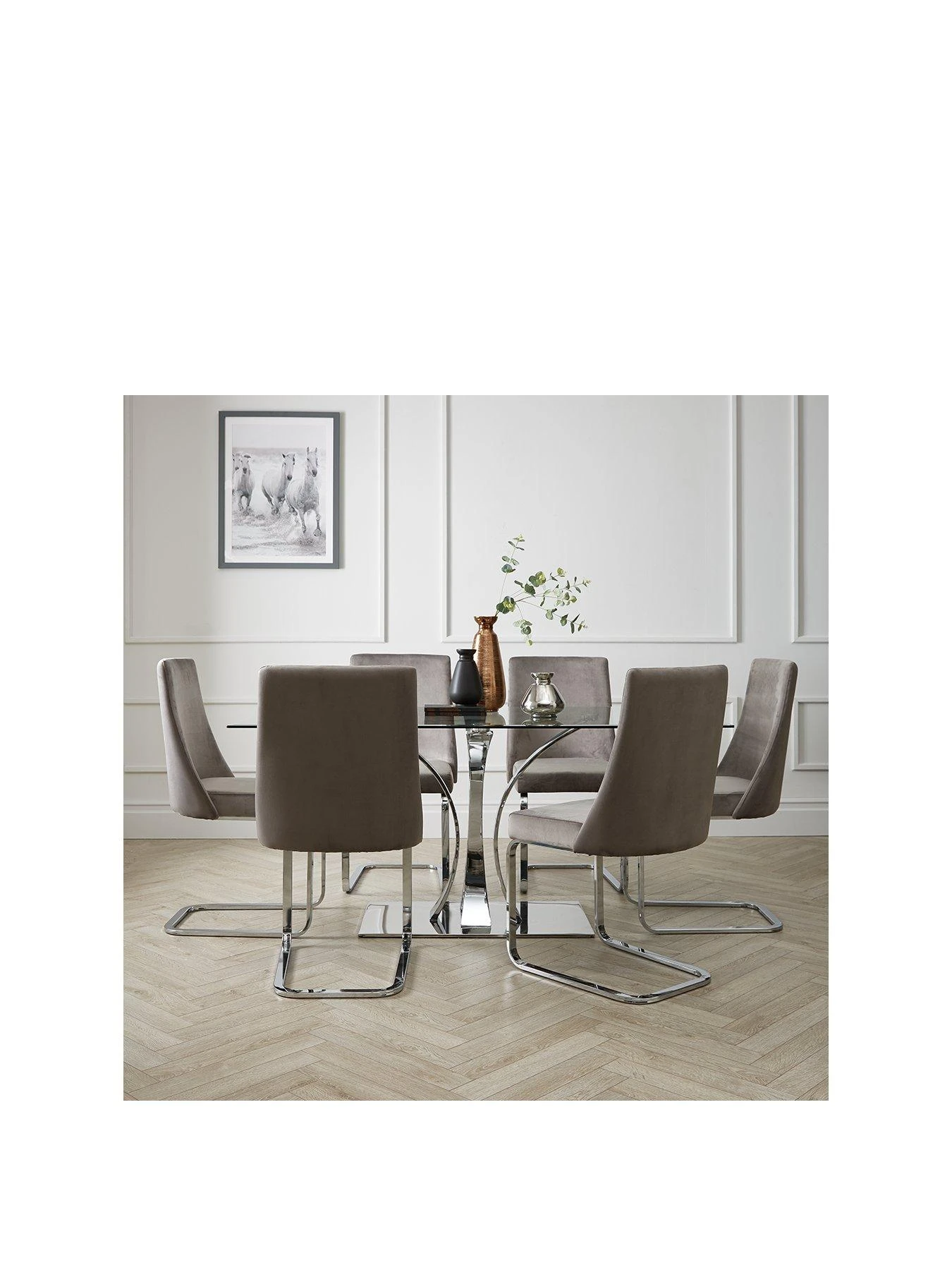 Alice Rectangle Glass and Chrome Dining Table + 6 Velvet Chairs