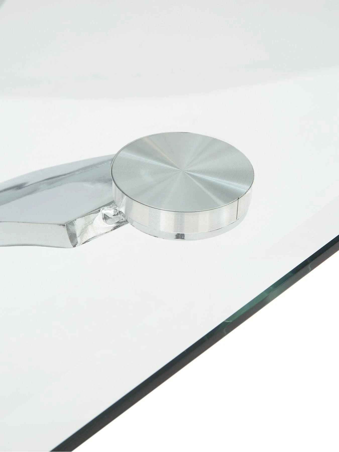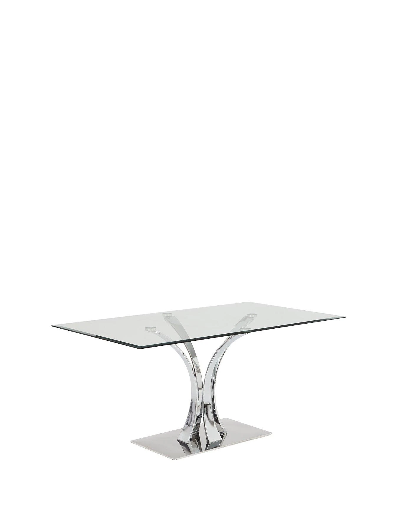 Part table, part sculpture, Alice flaunts a breathtaking shiny chrome base, featuring four sections that gently curve outwards as they rise towards the clear glass top. The top measures a generous 160 cm in length, offering plenty of space for your family and dinner guests.