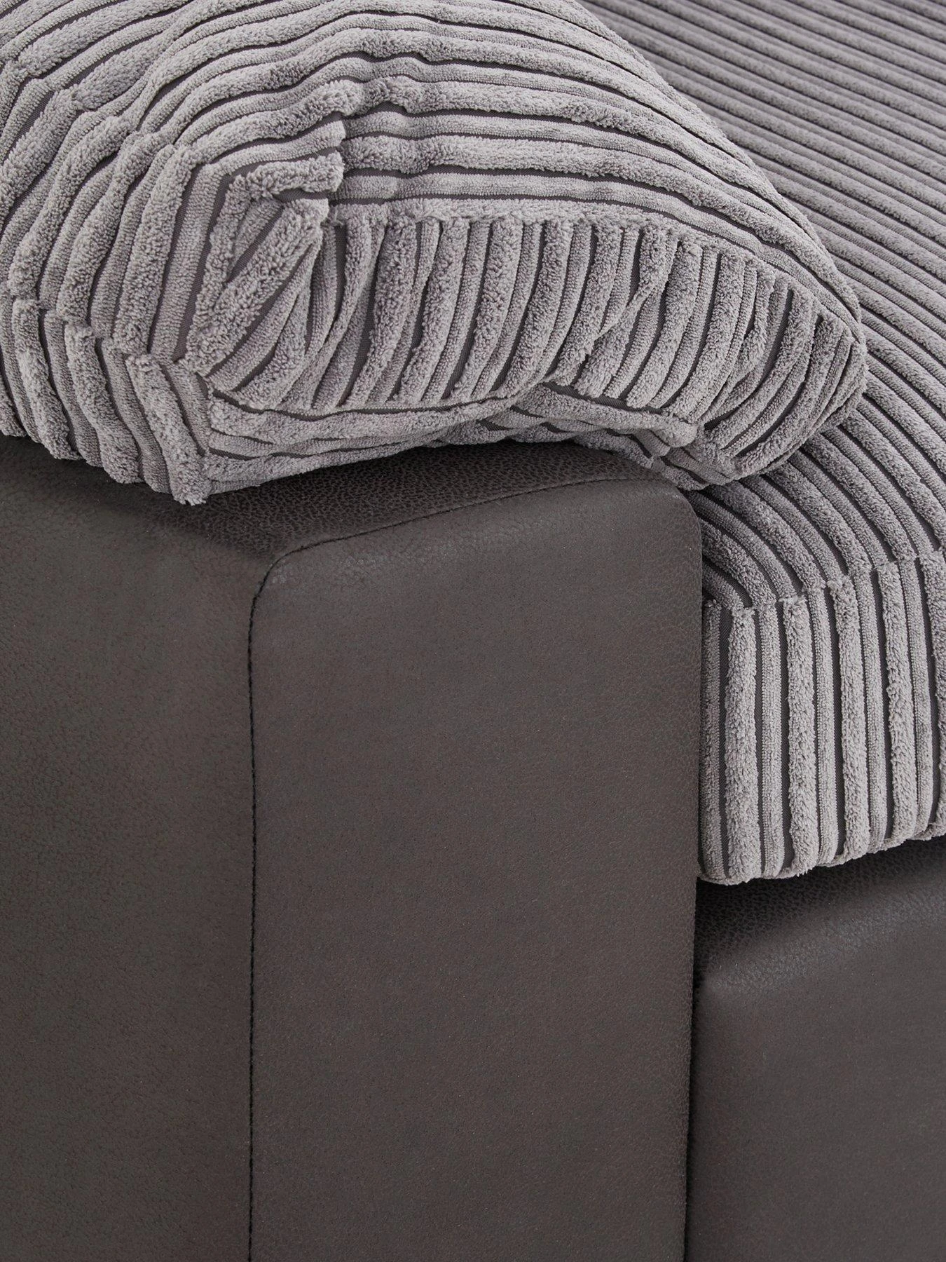 With a fashionable faux leather outer that smartly covers the clean lines of the sofa, Armstrong’s cushions are upholstered in a super soft jumbo cord. These chunky lines of fabric are ideal for curling up on when you’re unwinding after work or binging your favourite series. The different shades of grey create an eye-catching two-tone effect.
