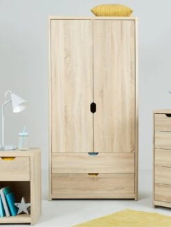 This two door wardrobe from our Aspen range of kids bedroom furniture gets its fashionable looks from smooth rounded corners and the contemporary curvature of the cut-out handles.