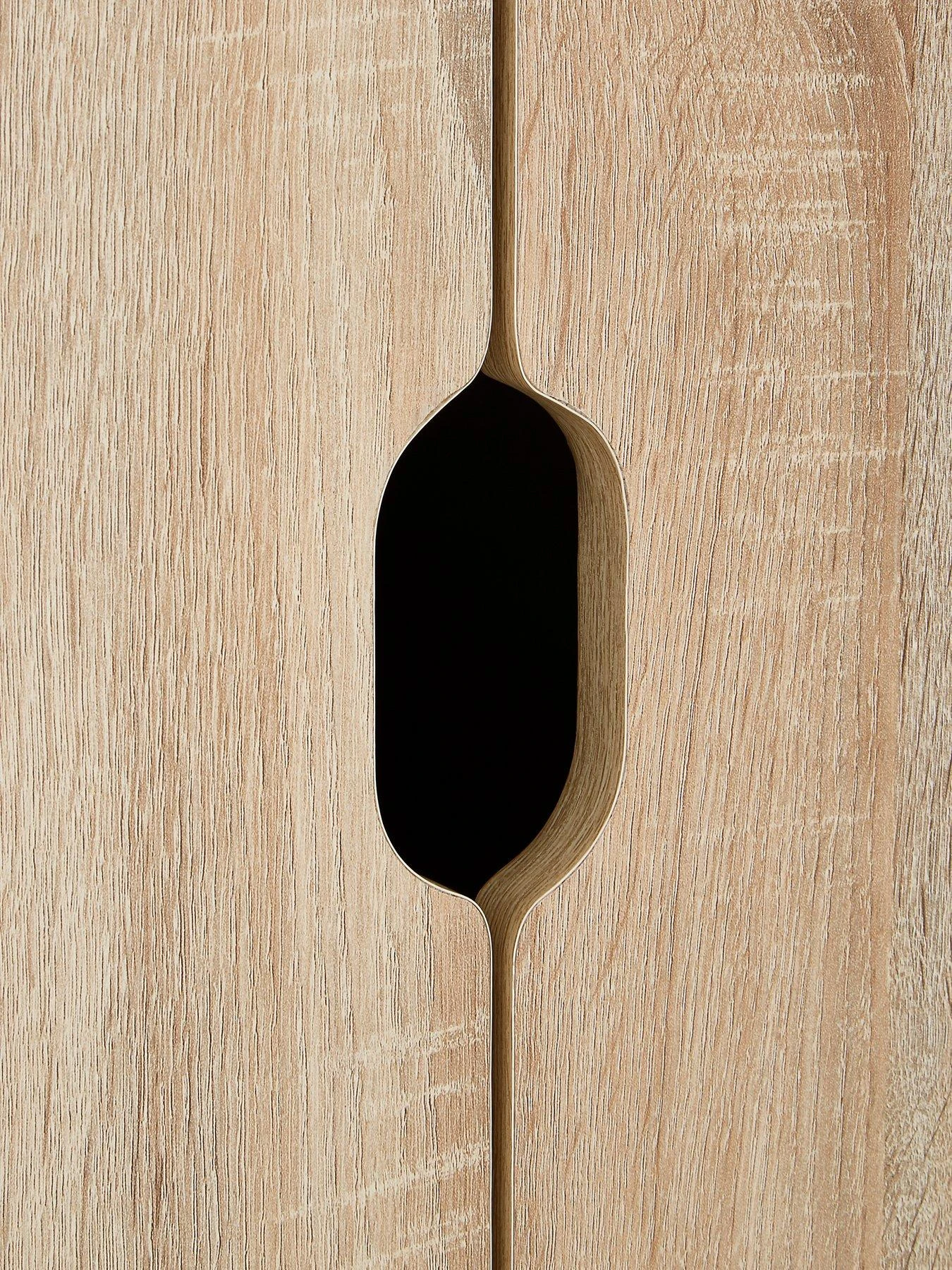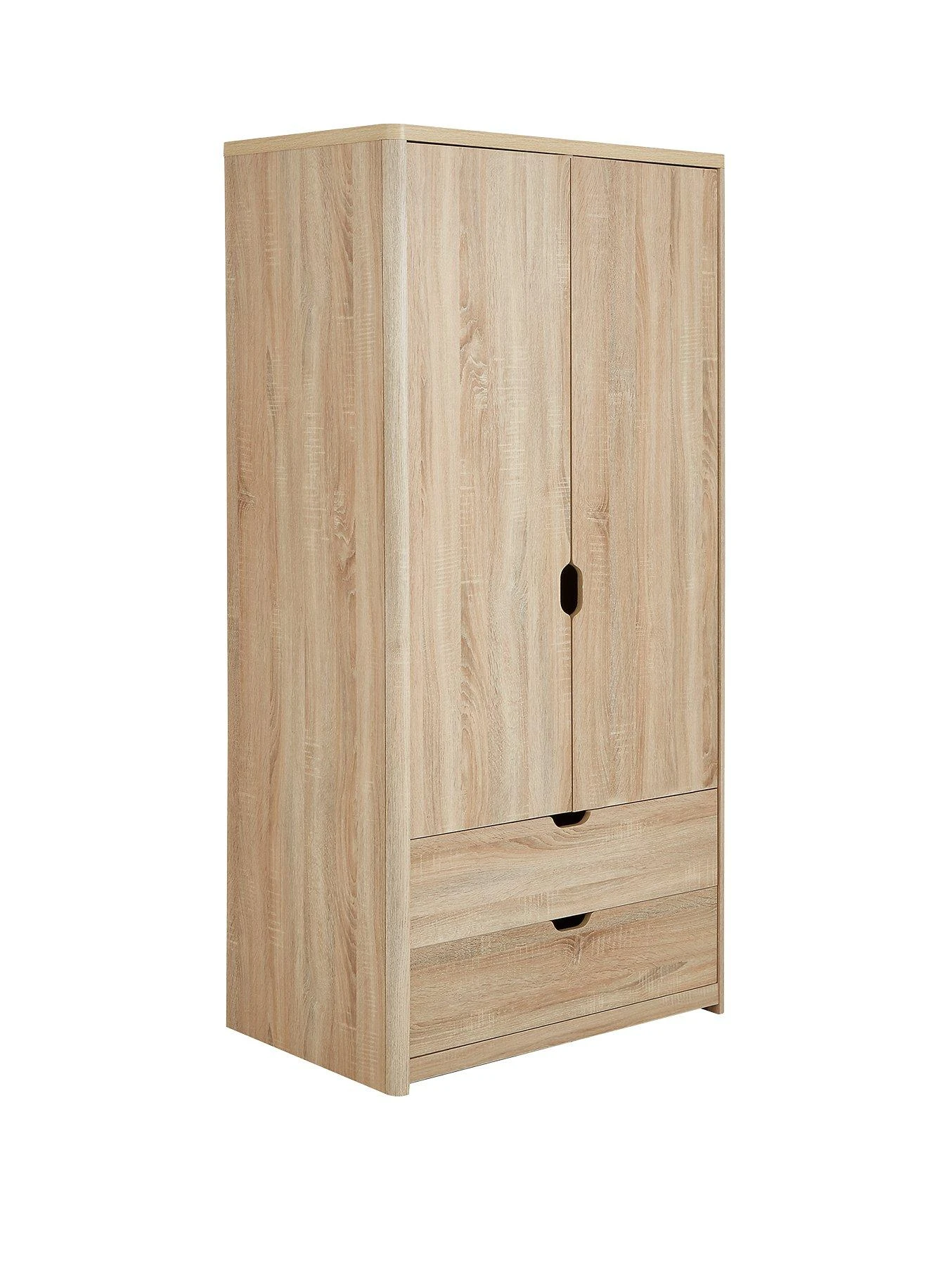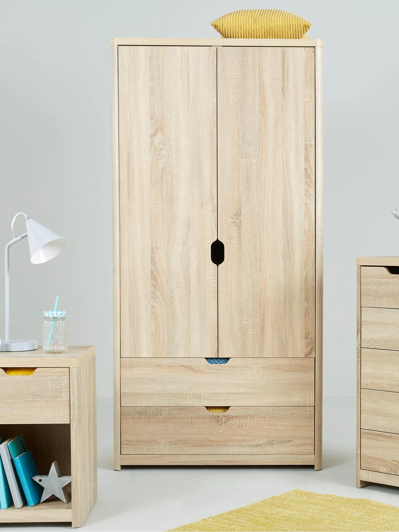 It’s available in bedroom brightening white, go-with-everything grey or warming oak-effect (the oak has been given a special rough-sawn finish for added rustic realism). The inside features a metal hanging rail, plus two drawers that glide quietly open on metal runners.