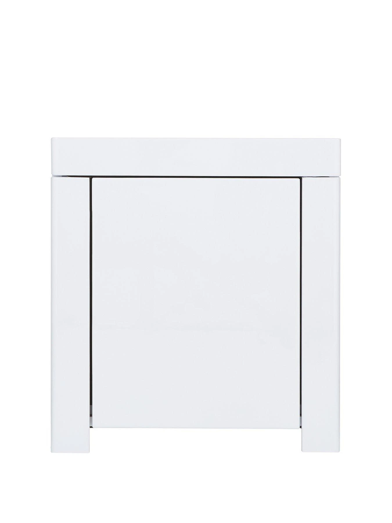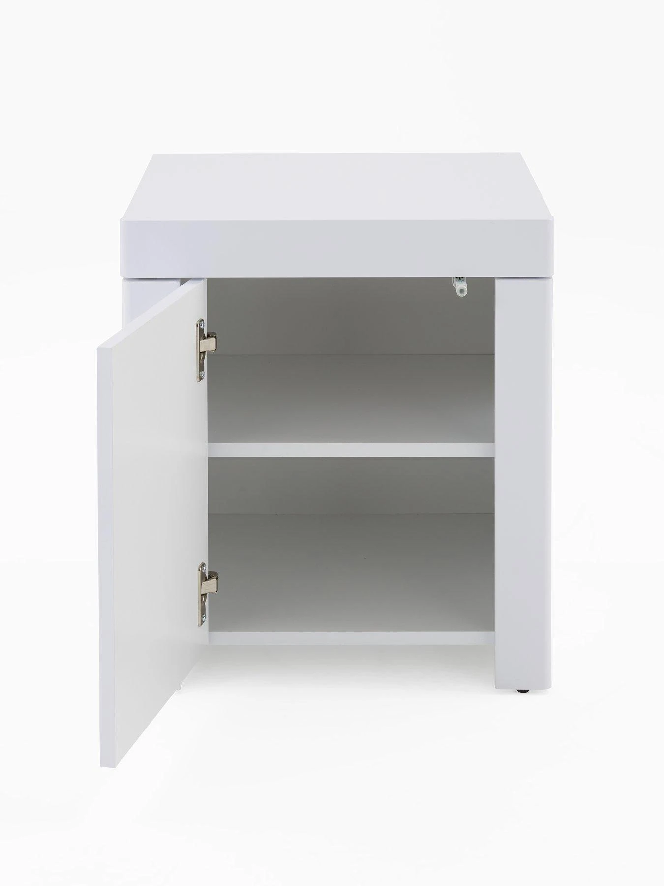 Clean and contemporary straight-edged design in a shiny gloss that comes in a trendy choice of black or white. Essential storage comes from a single cupboard with an internal shelf for added organisation, and the handle-free, push-to-open door ensures there’s nothing to take away from the slick sheen of the gloss.