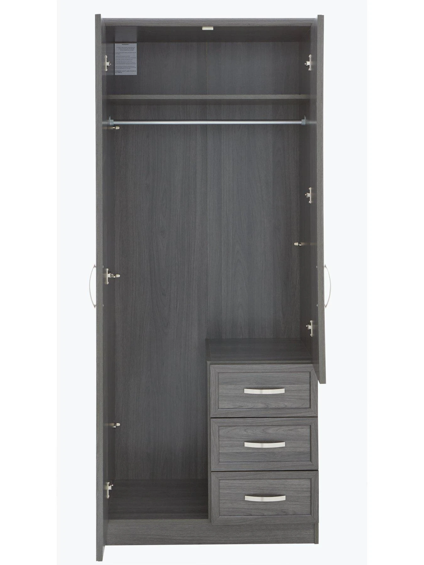 One door is mirrored to increase the depth and light in your bedroom, while inside you’ll find a hanging rail and high shelf. Extra storage comes from the three drawers, and it’s thoughtfully detailed with easy-glide metal drawer runners for a smooth action, plus adjustable metal hinges for easy alignment on uneven floors.