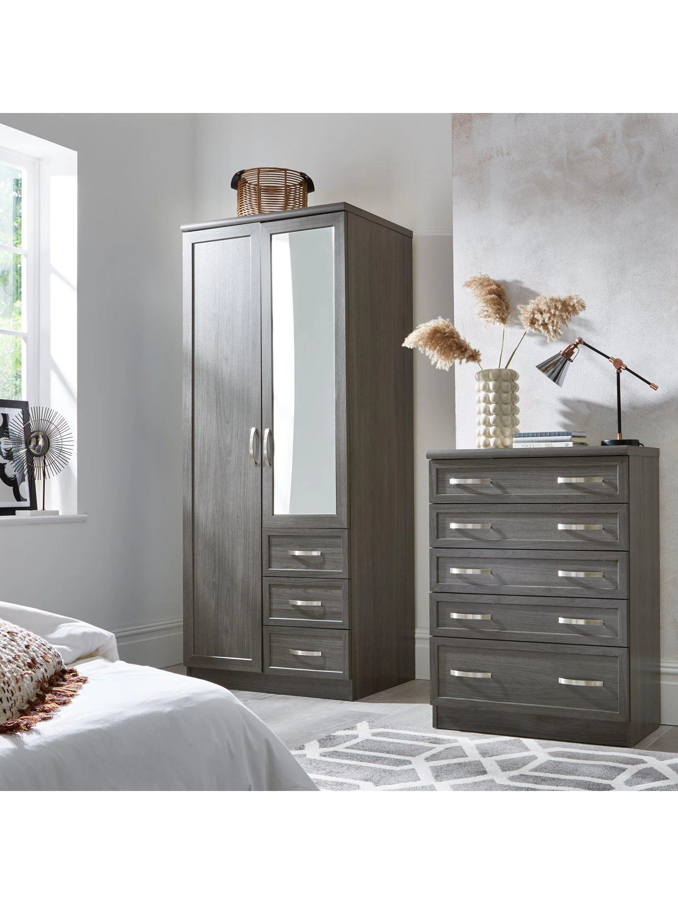 Camberley 2 Door, 3 Drawer Mirrored Wardrobe in Dark Oak-Effect, White or Oak-Effect
