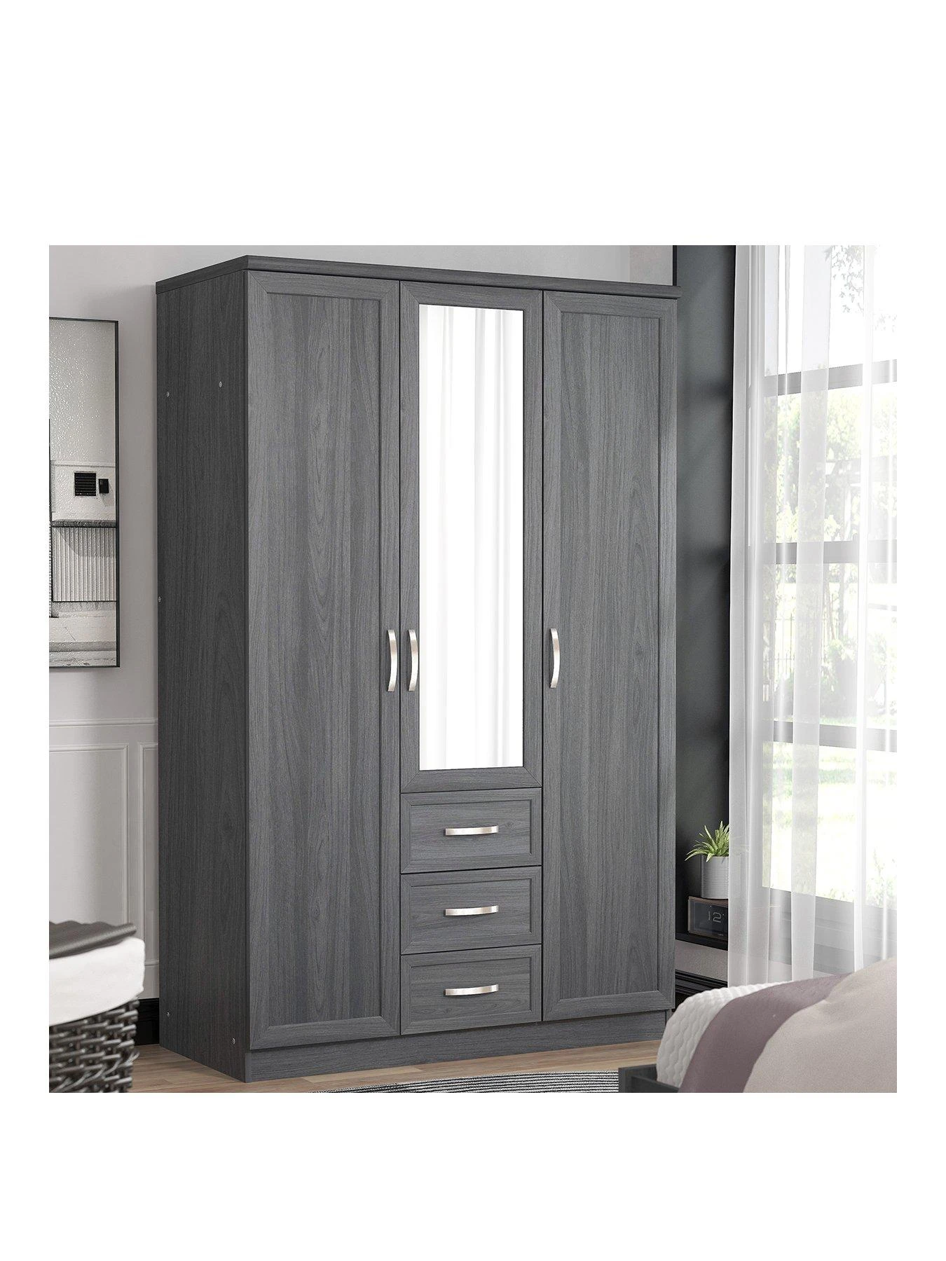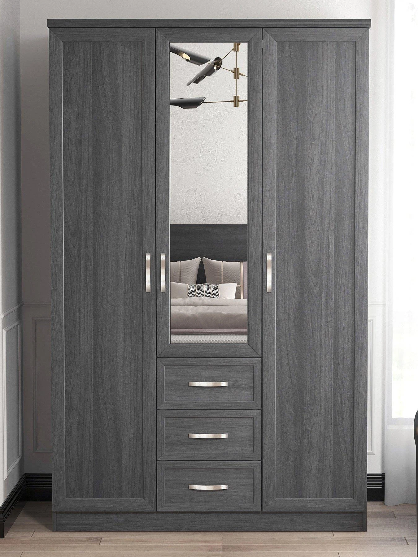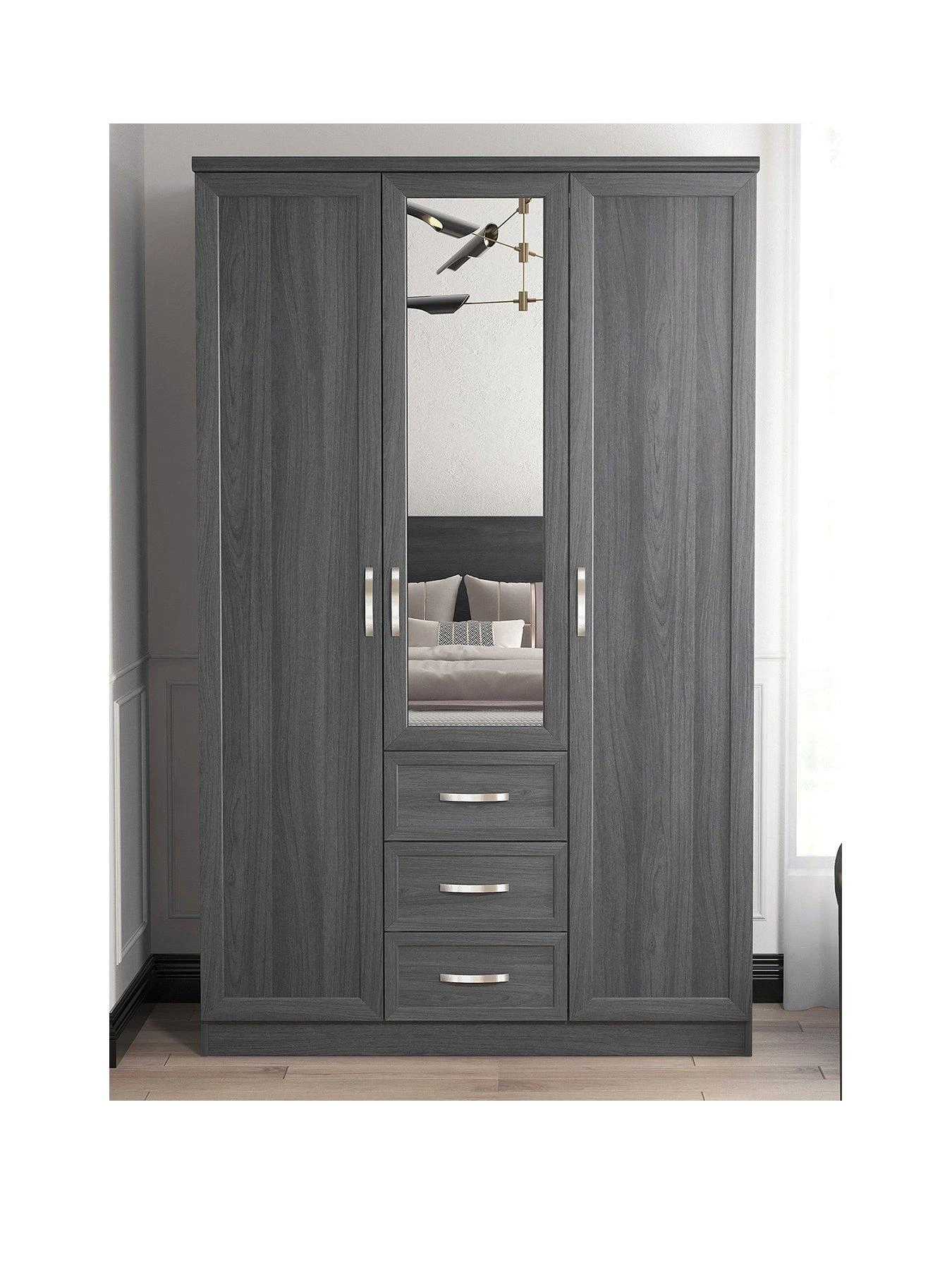 Camberley 3 Door, 3 Drawer Mirrored Wardrobe in Dark Oak Effect, White or Oak Effect.