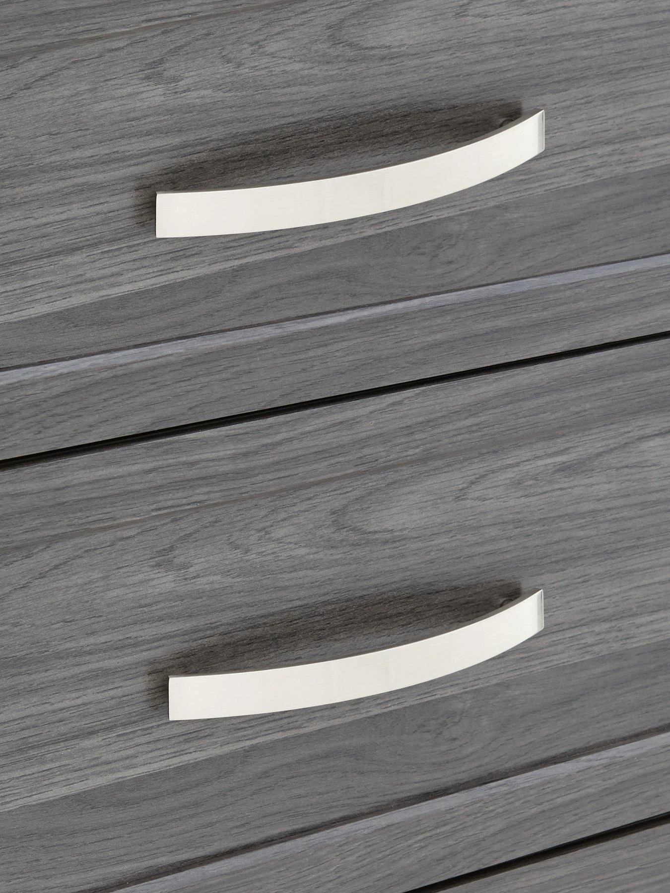 You can choose from a dark oak-effect, light oak-effect and fresh white to suit the colour scheme of your room. The wood-effects have a realistic grained finish, and each option is fitted with shiny metal handles.