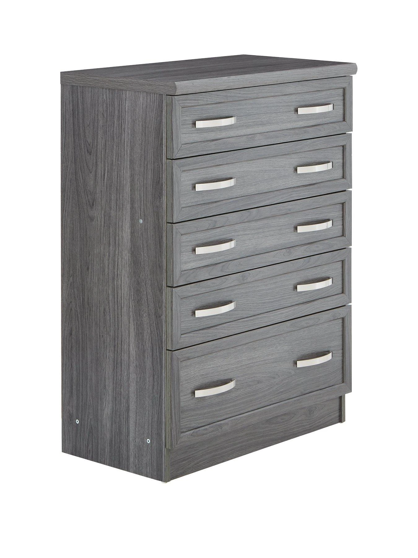 Camberley Graduated Chest of 5 Drawers in Dark Oak Effect, White or Oak Effect