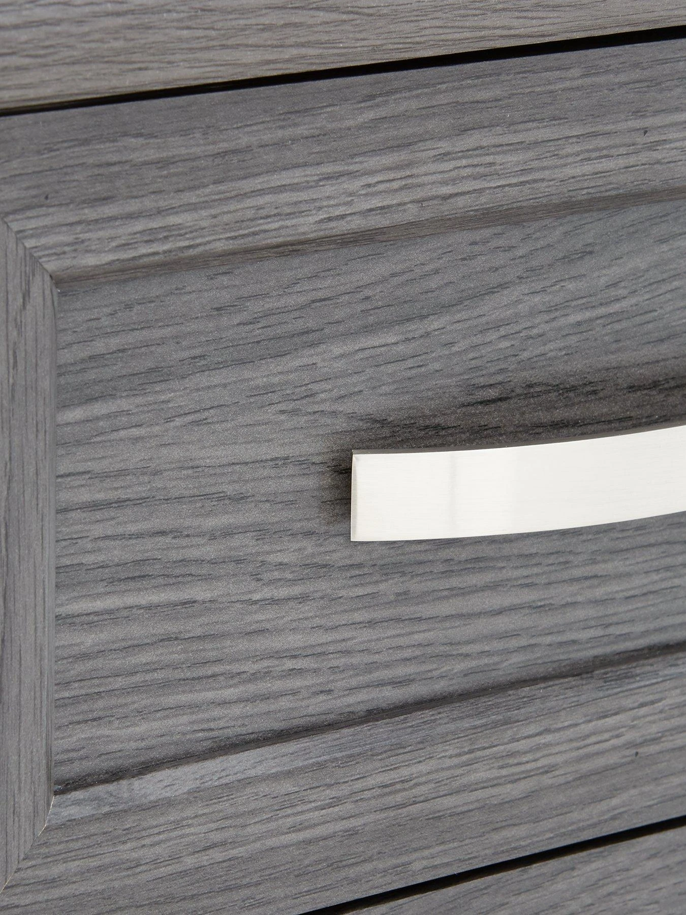 You can choose from a dark oak-effect, light oak-effect and fresh white to suit the colour scheme of your room. The wood-effects have a realistic grained finish, and each option is fitted with shiny metal handles.