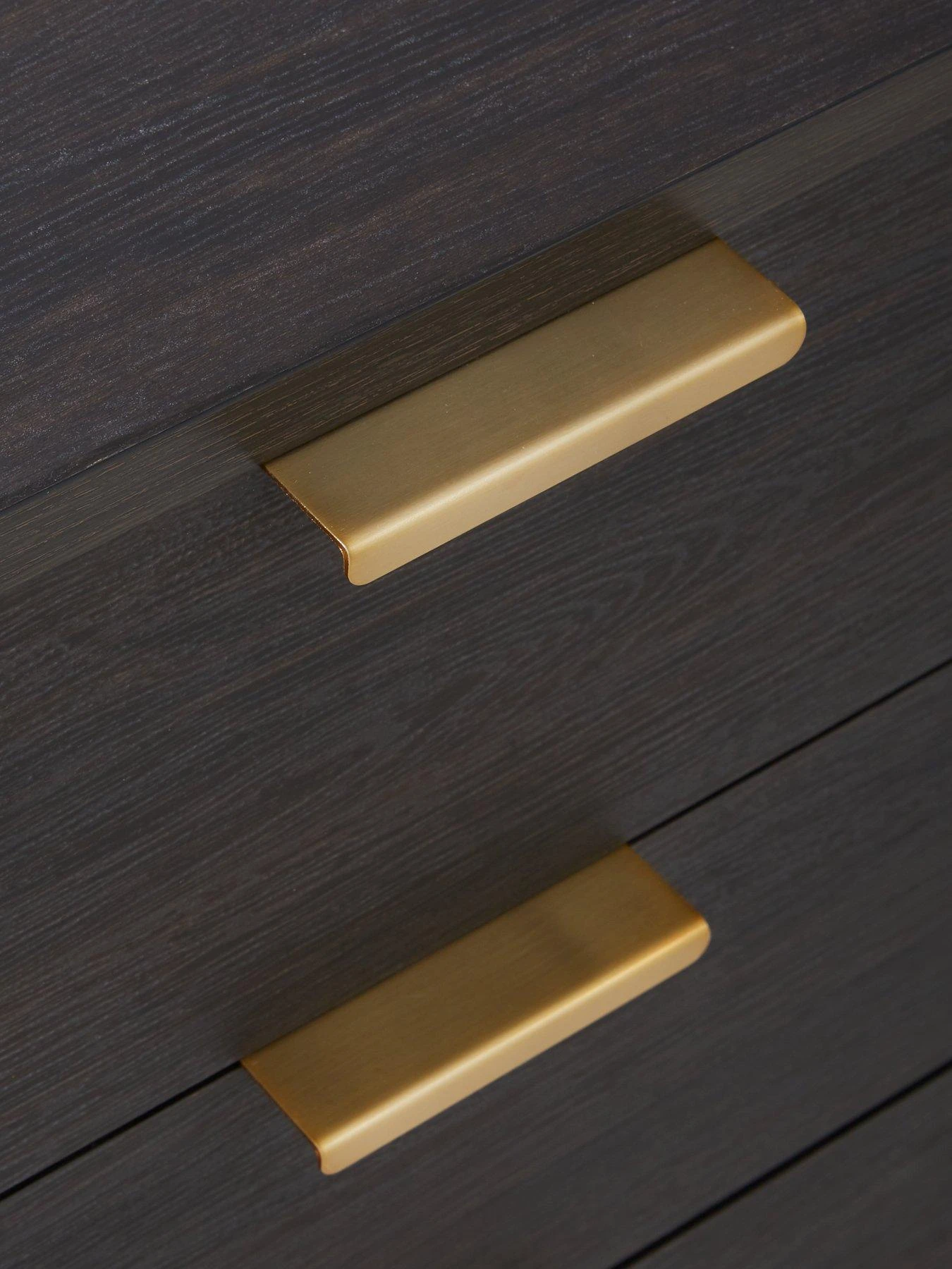 The elegant exterior is completed with matching gold handles. Each cupboard contains its own shelf to help maximise the storage available, while added organisation comes from a trio of drawers that sit on smooth, friction-free metal runners.