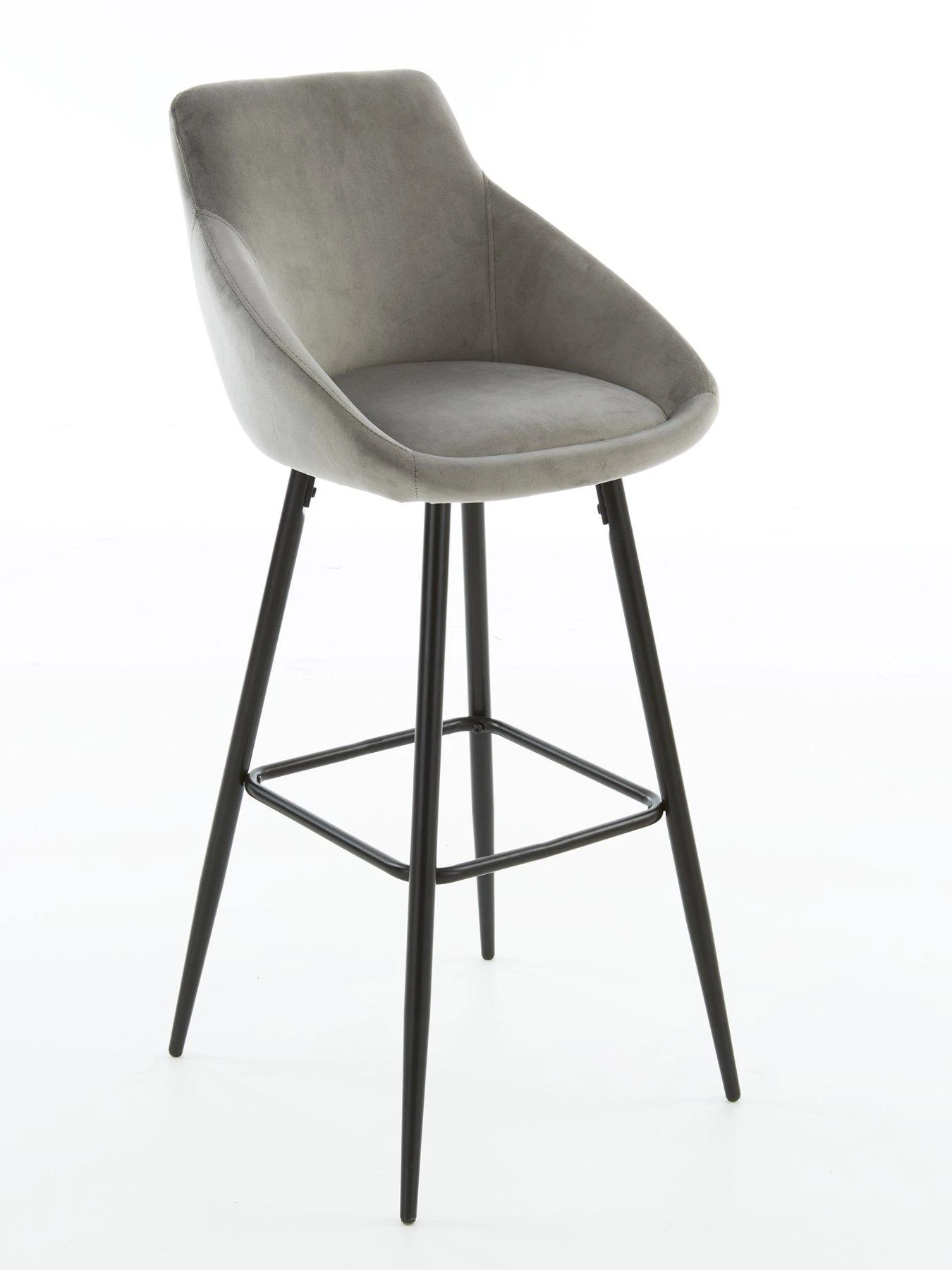The table comes complete with a pair of high stools that are cushioned for comfort and wrapped in a soft velvety grey fabric. They’re finished with supportive metal tube legs to match the table – these also sit at a slanted angle for a touch of Scandi charm.