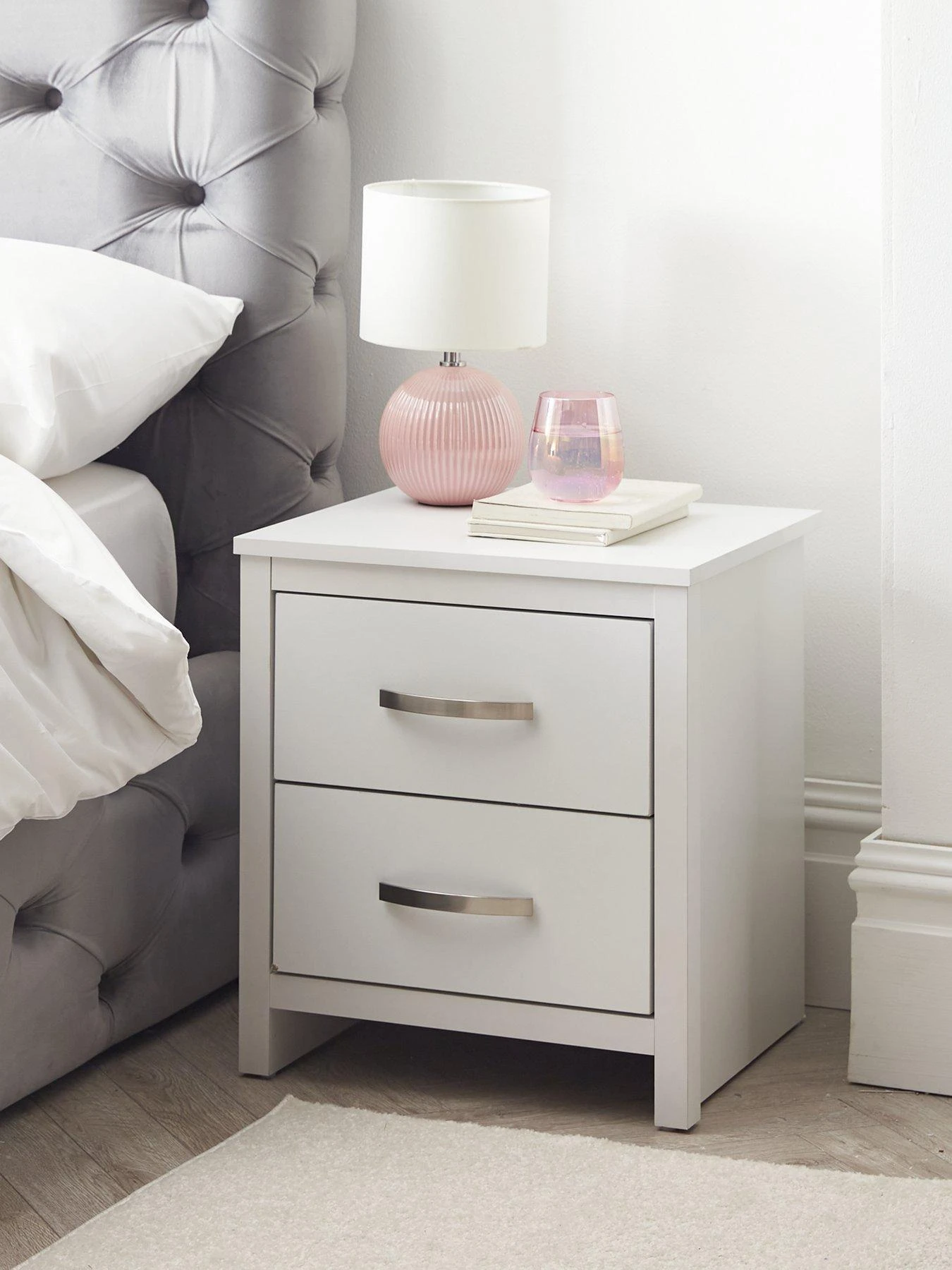 Ely 2 Drawer Bedside in Grey or White