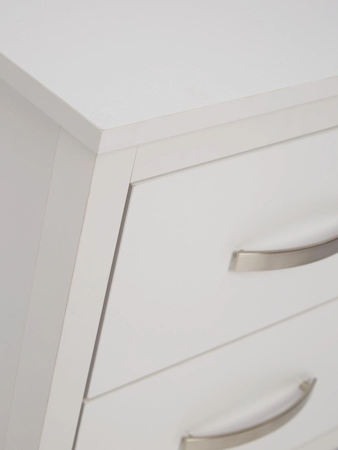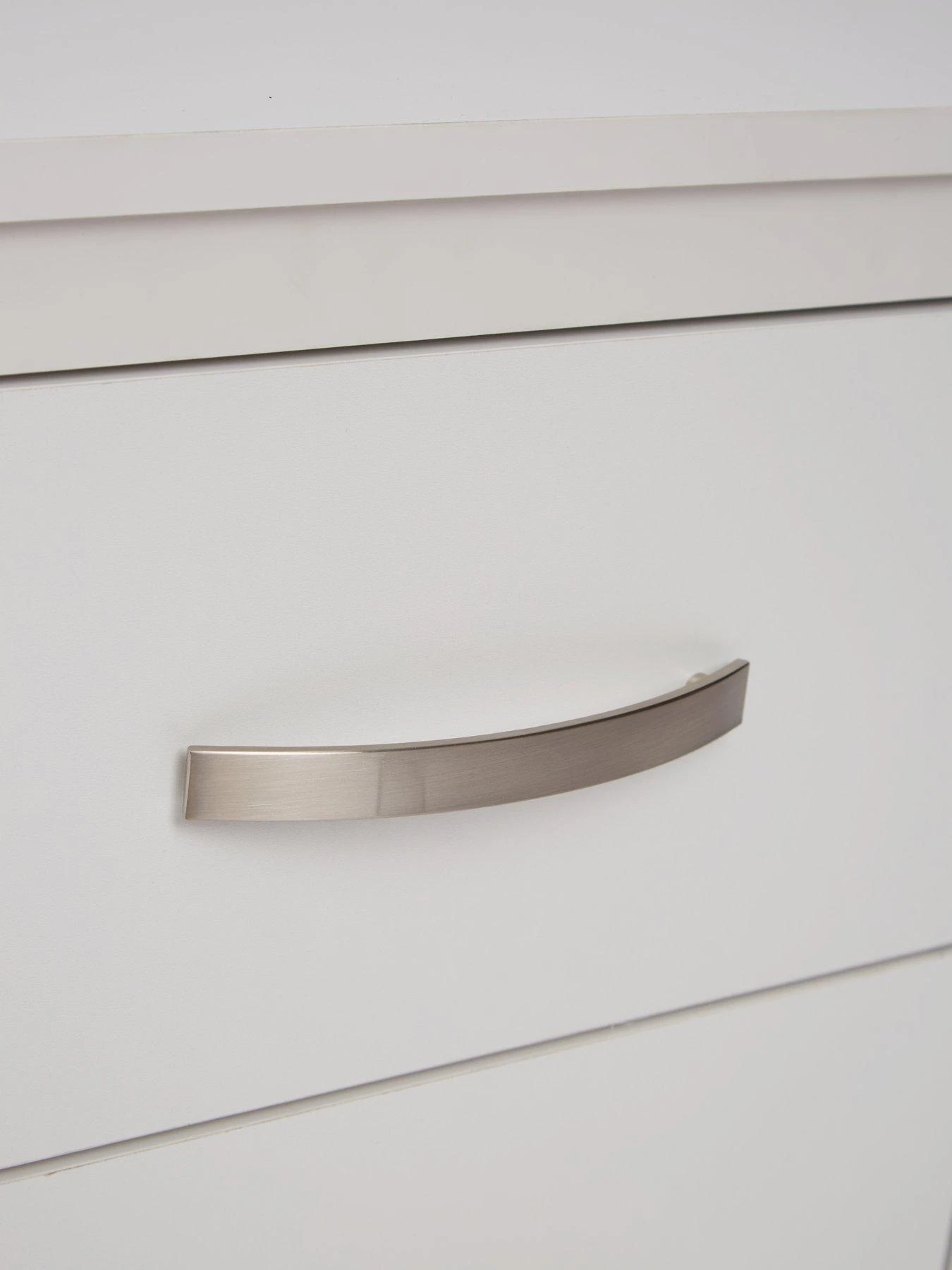 Two drawers are accented with metal curved handles for a splash of sleek shine, and they glide smoothly open on metal runners. You can store away bedside clutter in the two drawers, then place an equally stylish lamp on the top.