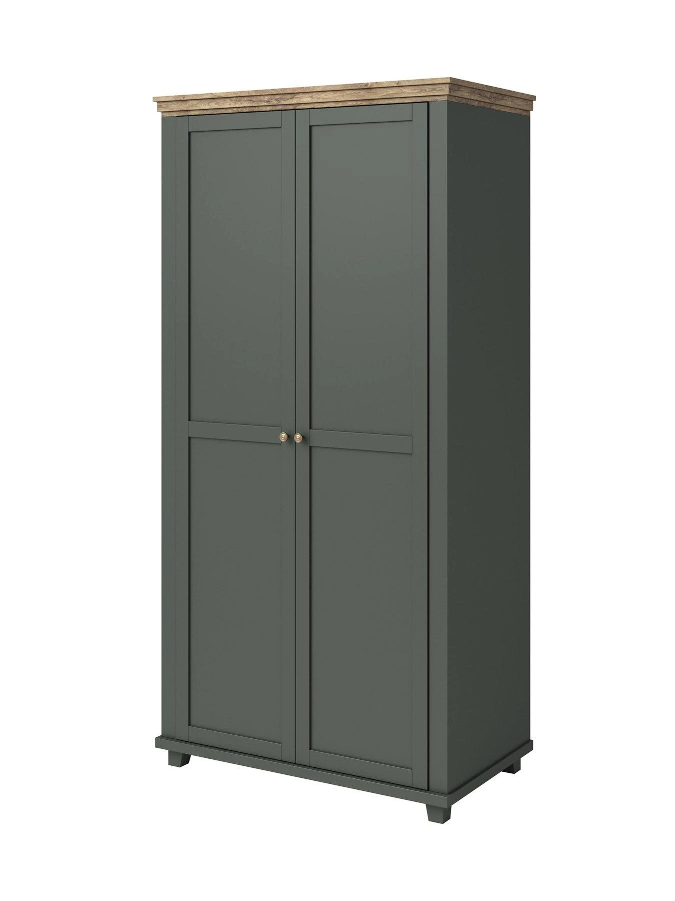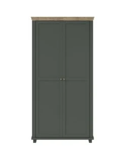 Evora 2 Door Wardrobe in White/Oak Effect or Green/Oak Effect