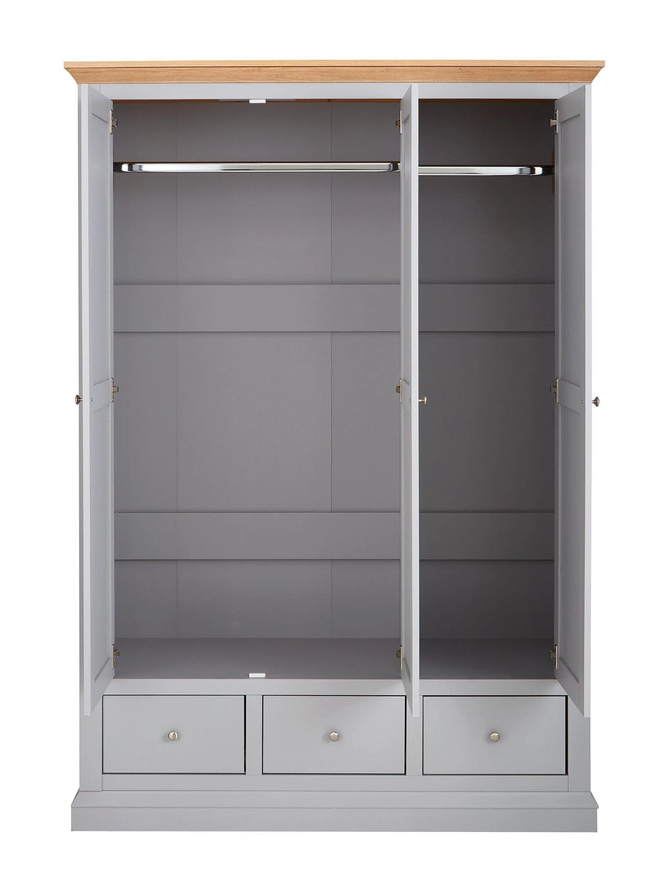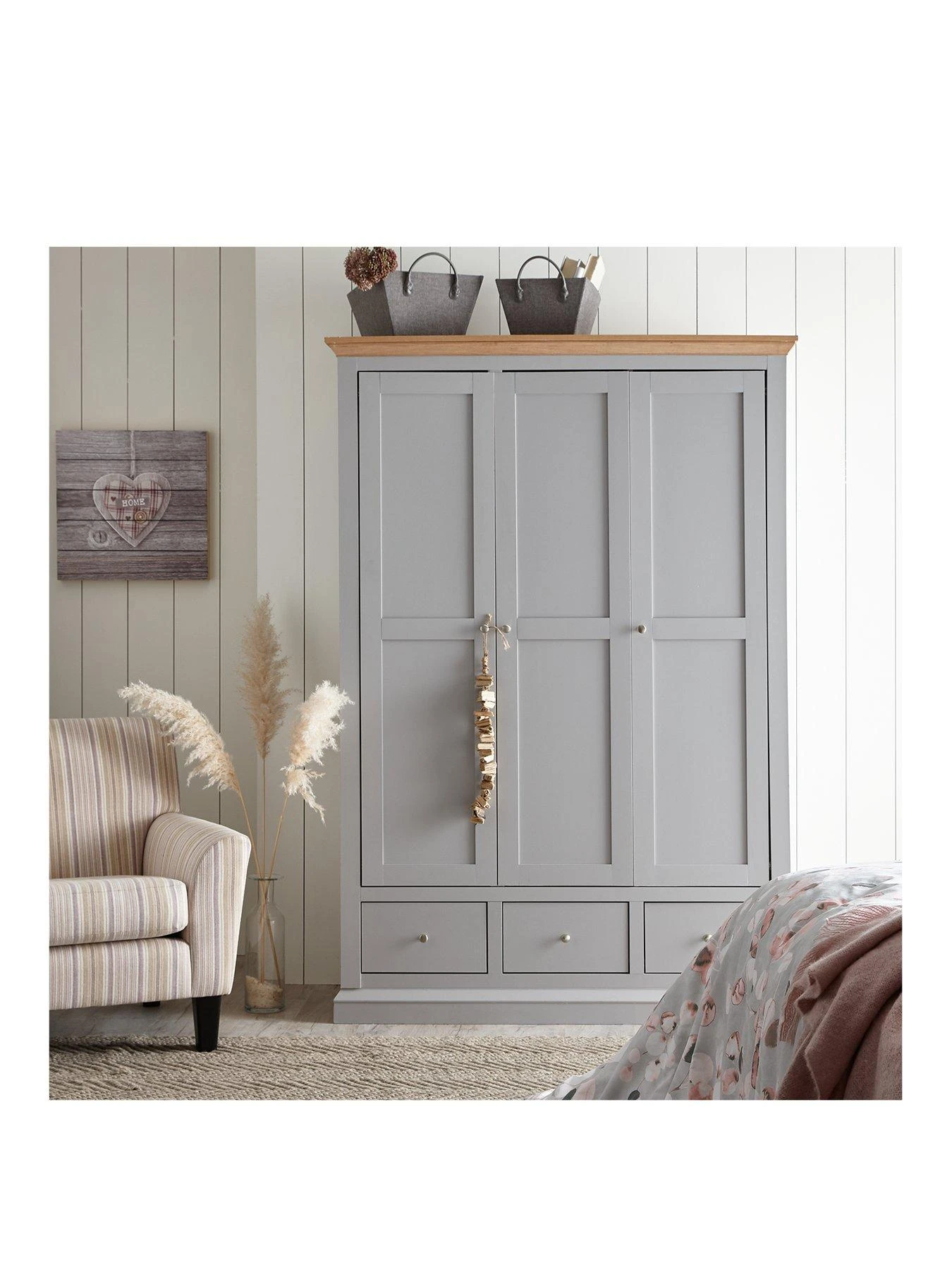 Hanna 3 Door, 3 Drawer Wardrobe in Grey/Oak Effect or Cream/Oak Effect