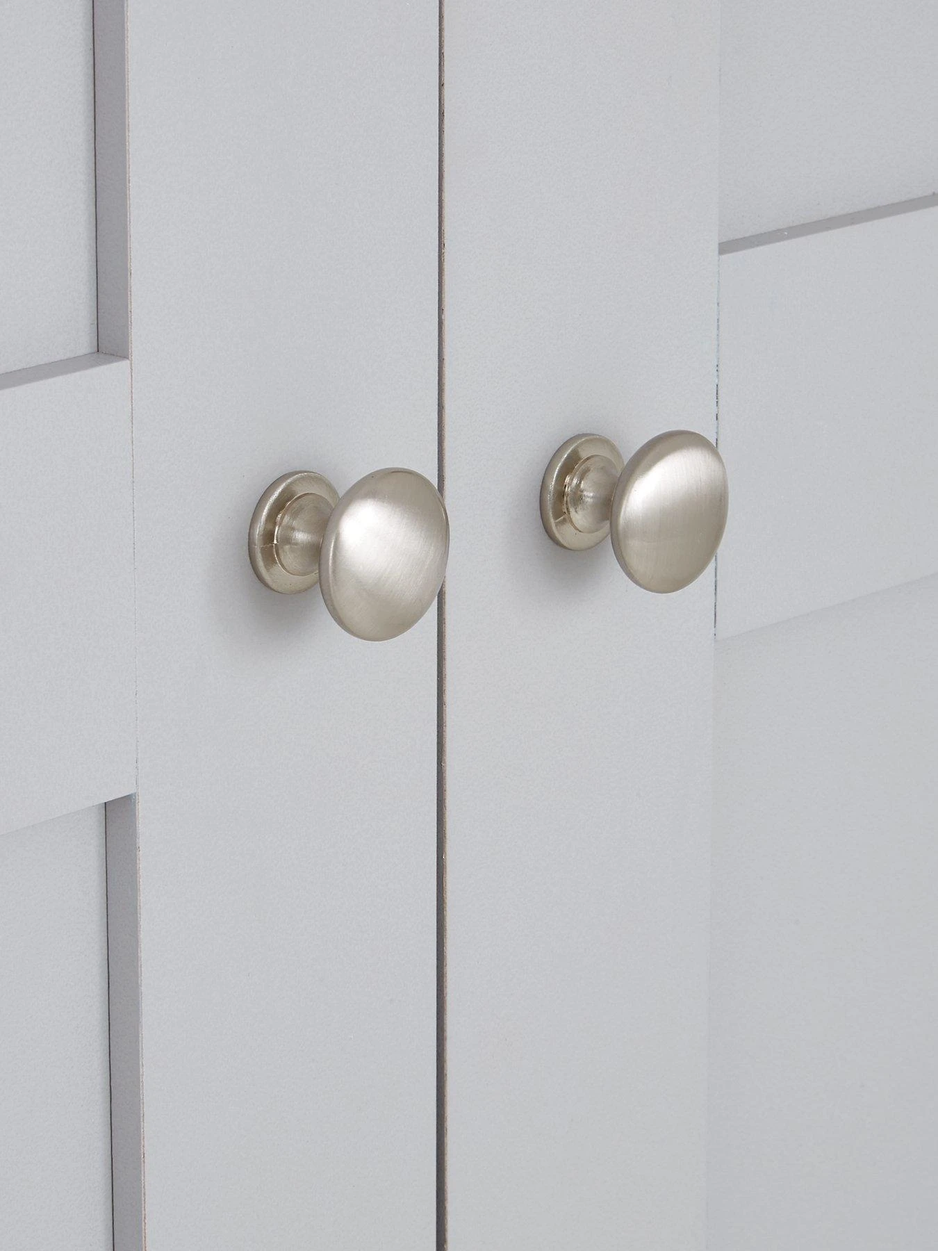 Accented with shiny metal handles, its two compartments (one wide, one narrow) contain a metal hanging rail, while three drawers are fitted with smooth metal runners to ensure an easy-glide action.