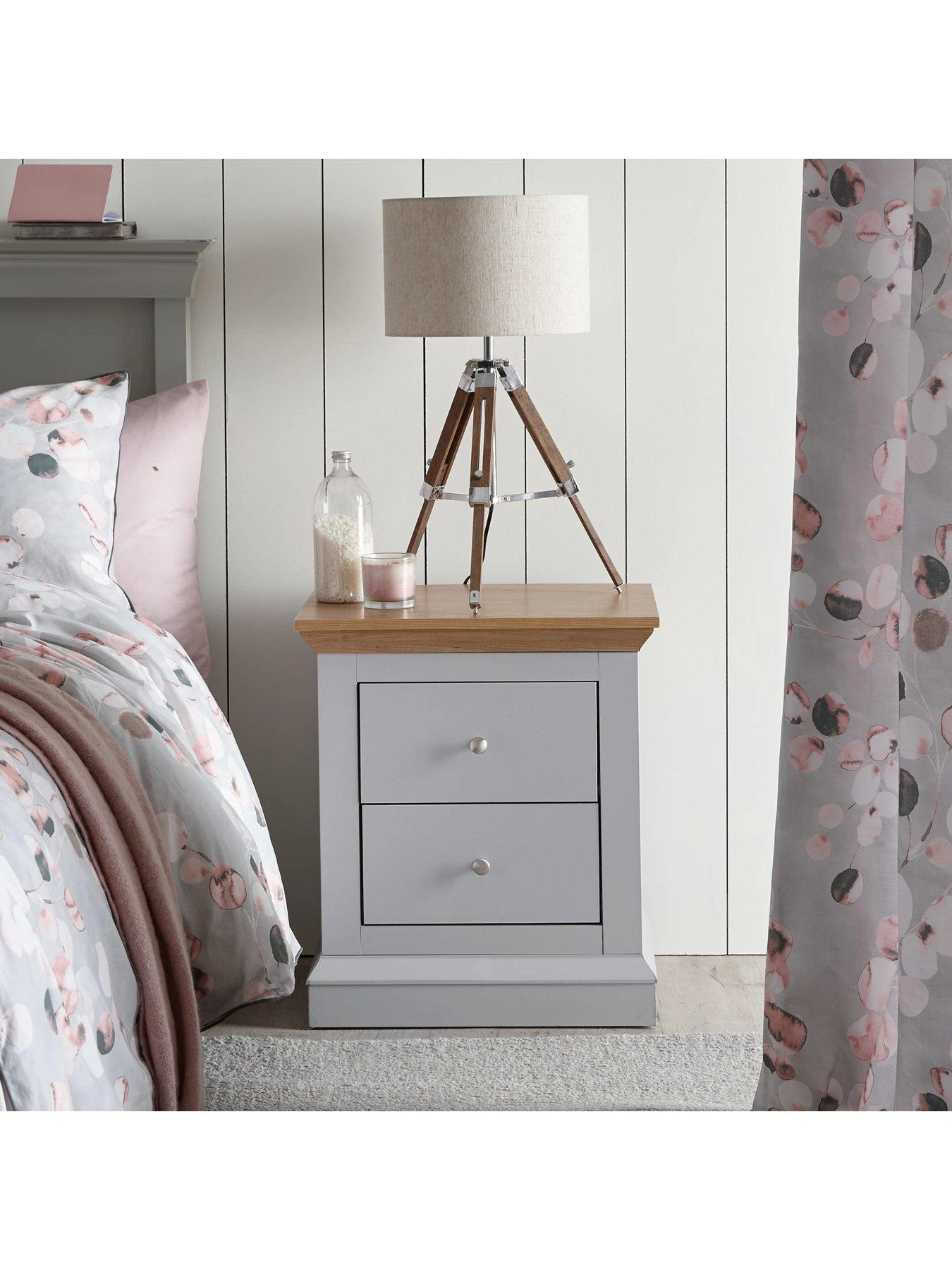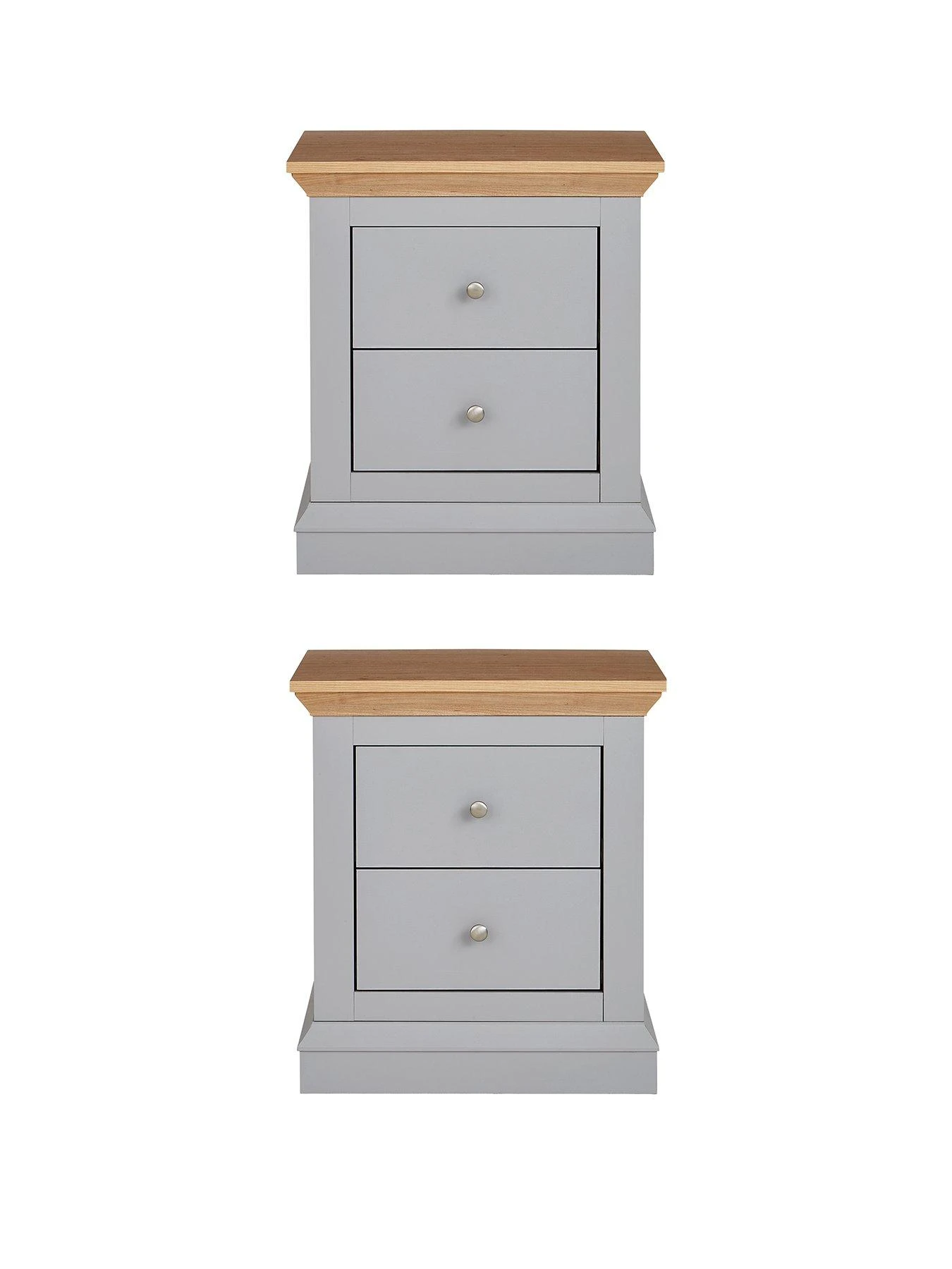 Hanna Pair of 2 Drawer Bedside Chests in Cream/Oak Effect or Grey/Oak Effect