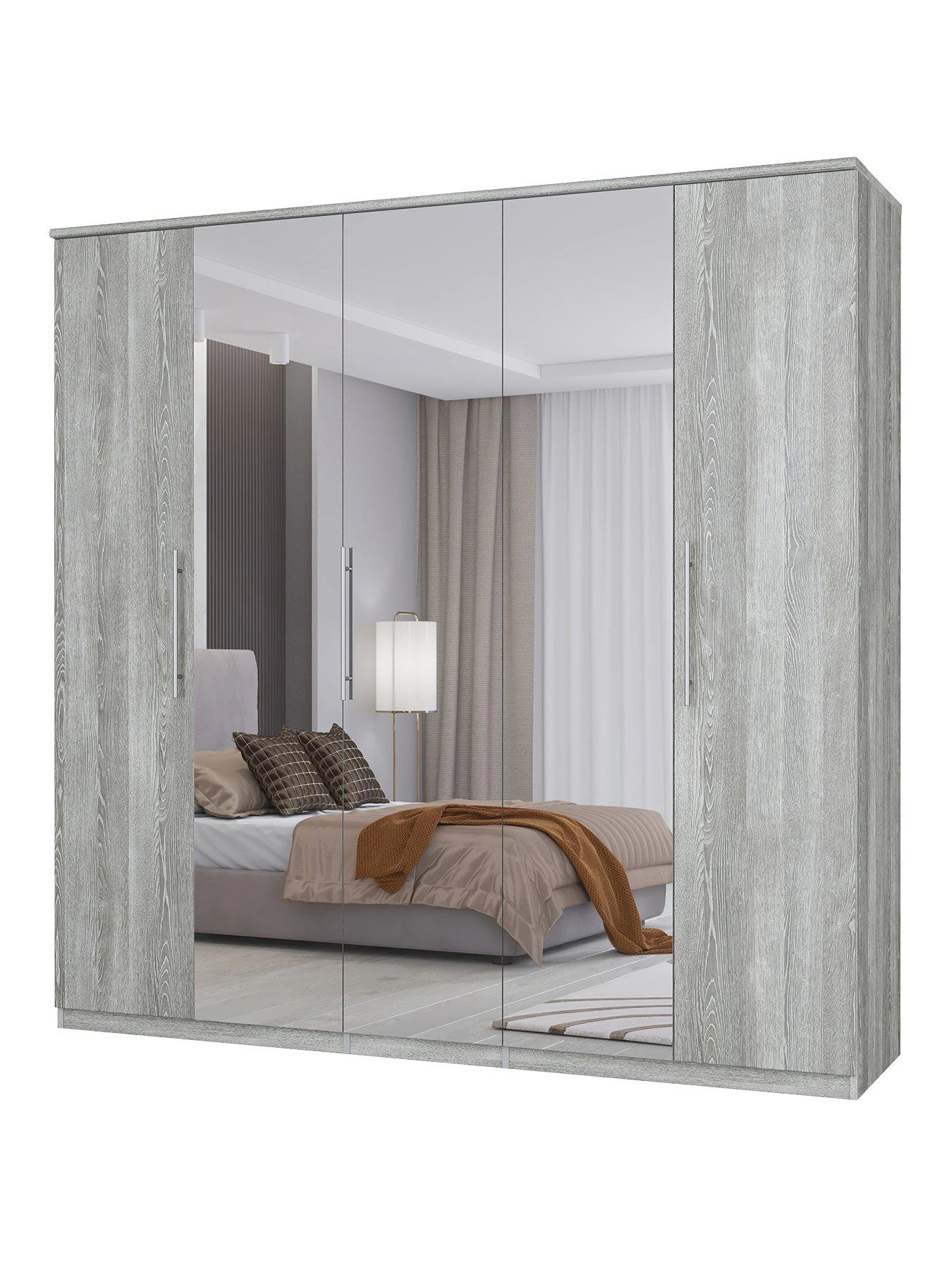 Prague 5-door Mirrored Wardrobe in White Ash-Effect, Oak-Effect, Walnut-Effect, Grey Ash-Effect or Black Ash-Effect – from our great value Home Essentials range – FSC® Certified