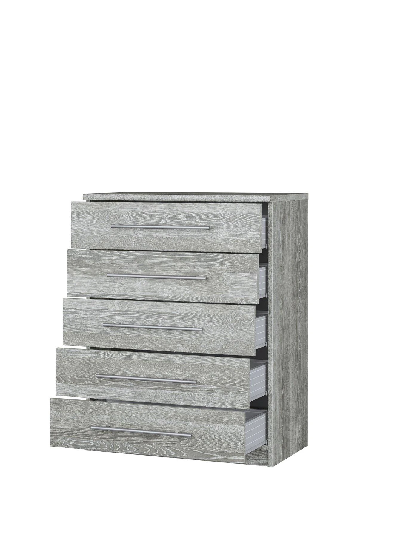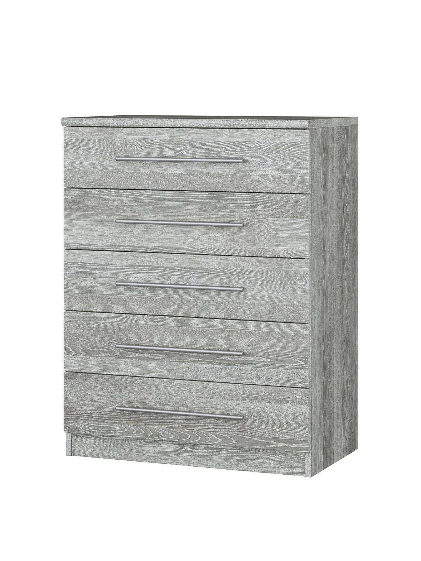 Prague Chest of 5 Drawers – from our great value Home Essentials range in White, Oak Effect or Black Ash – FSC® Certified