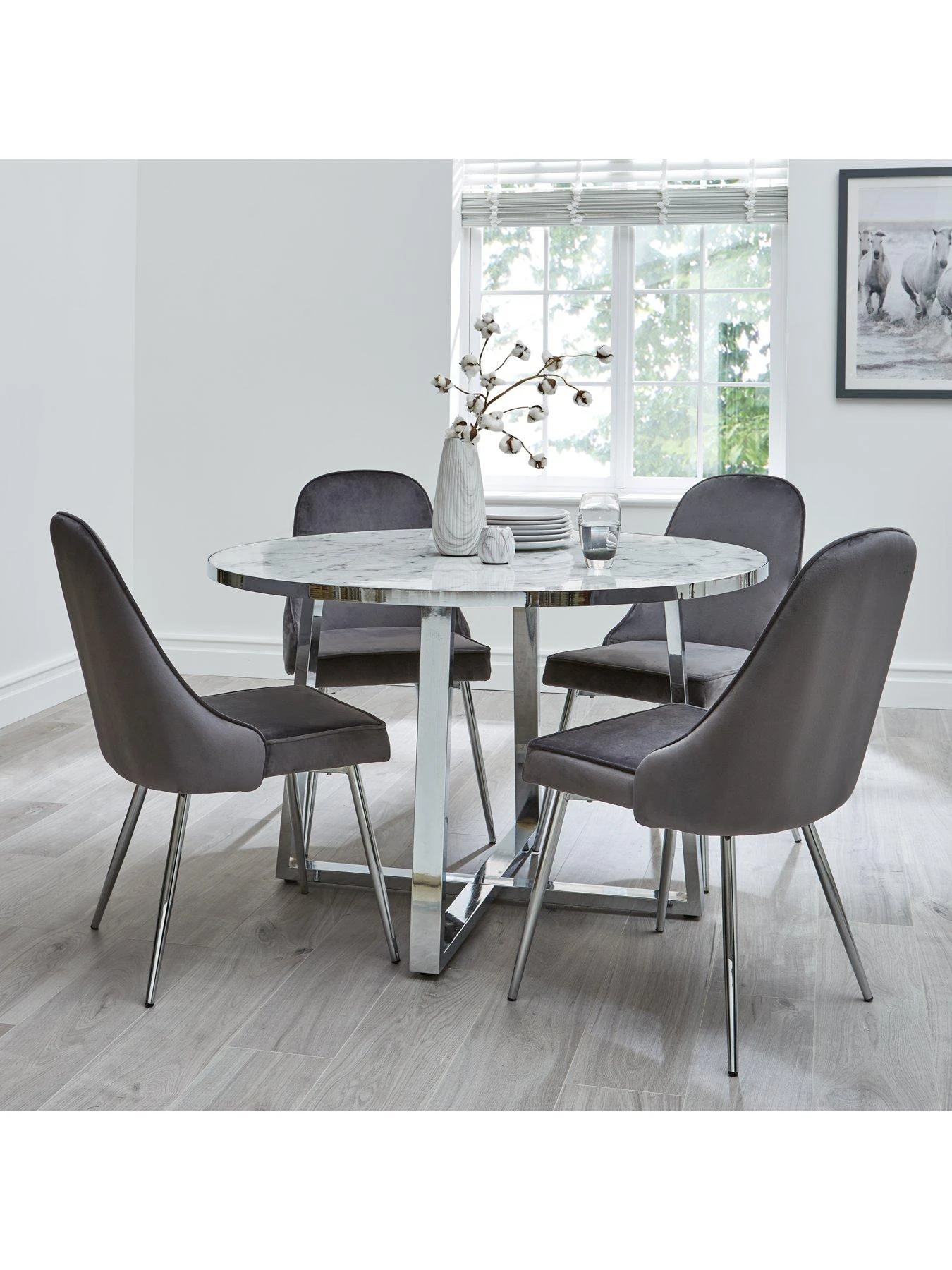 Ivy Marble Effect 120 cm Circle Dining Table plus 4 Chairs in Marble/Chrome