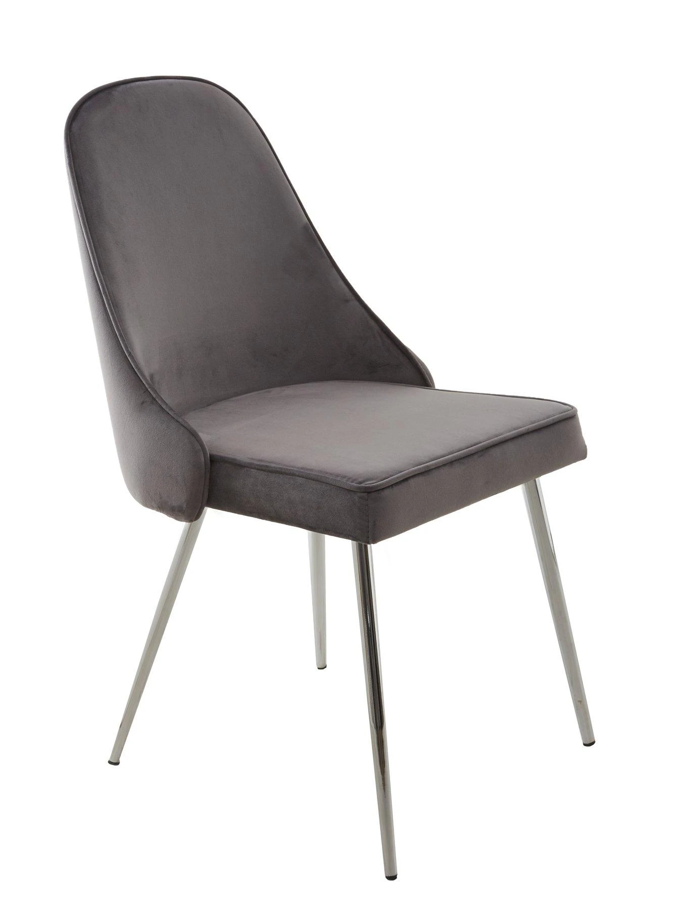 The marble finish displays a stunning pattern of veins and swirls for a realistic look, while the edge is framed with the shiny chrome. The modern criss-cross base gives the table an eye-catching finish, and it comes complete with four velvet fabric chairs. These have a contemporary curved back shade, soft padding for comfort, and sit on slimline metal tube legs.