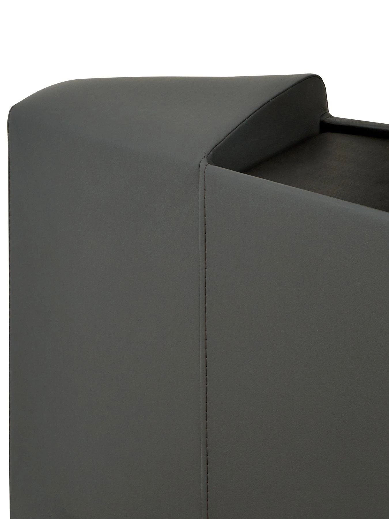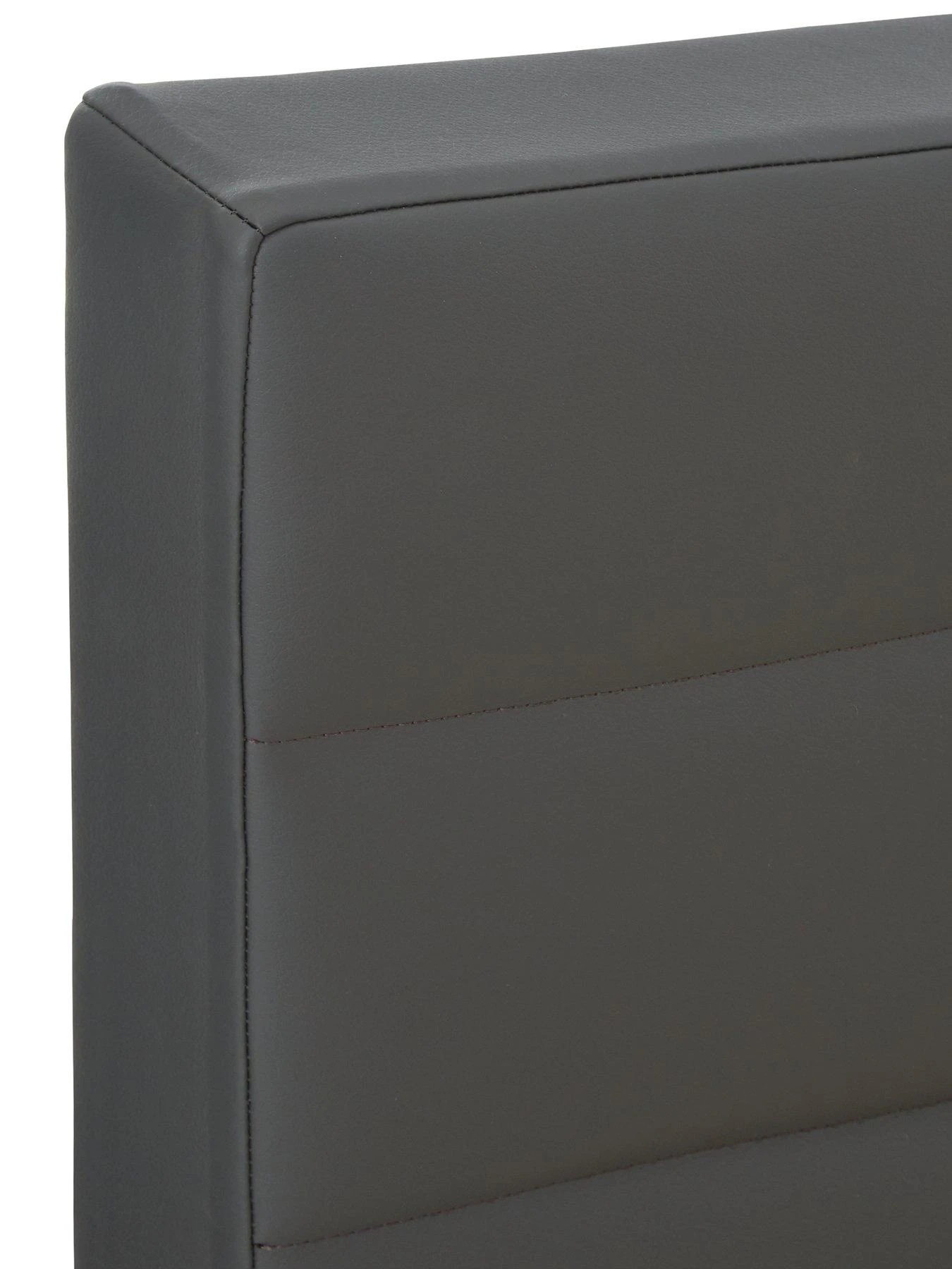 Upholstered in a fashionable faux leather fabric that comes in a choice of black or grey, the foot end holds space for a television between 20 and 32 inches in screen size.