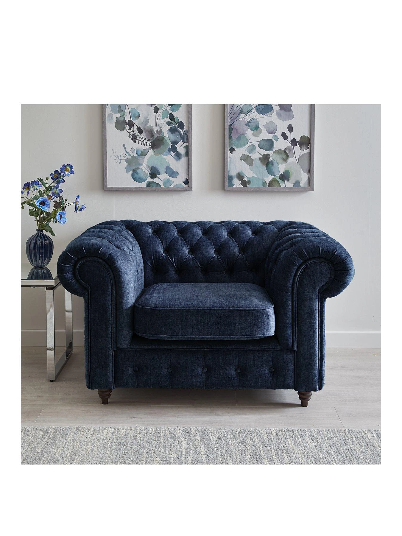 Laura Chesterfield Fabric Armchair in Navy – FSC® Certified