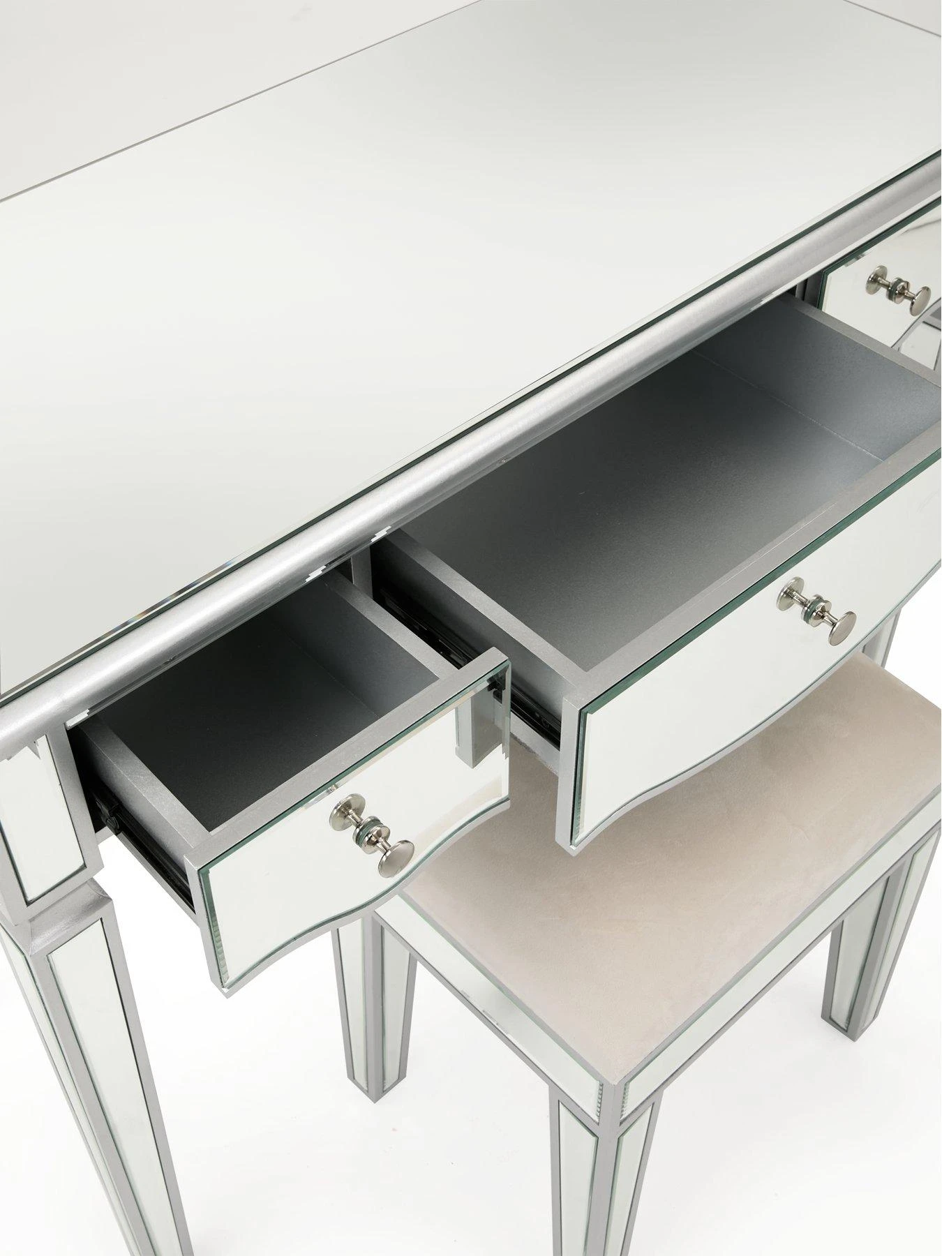 Accent your bedroom with an echo of art deco design with this light-luring dressing table and stool set from the majestic Mirage collection.