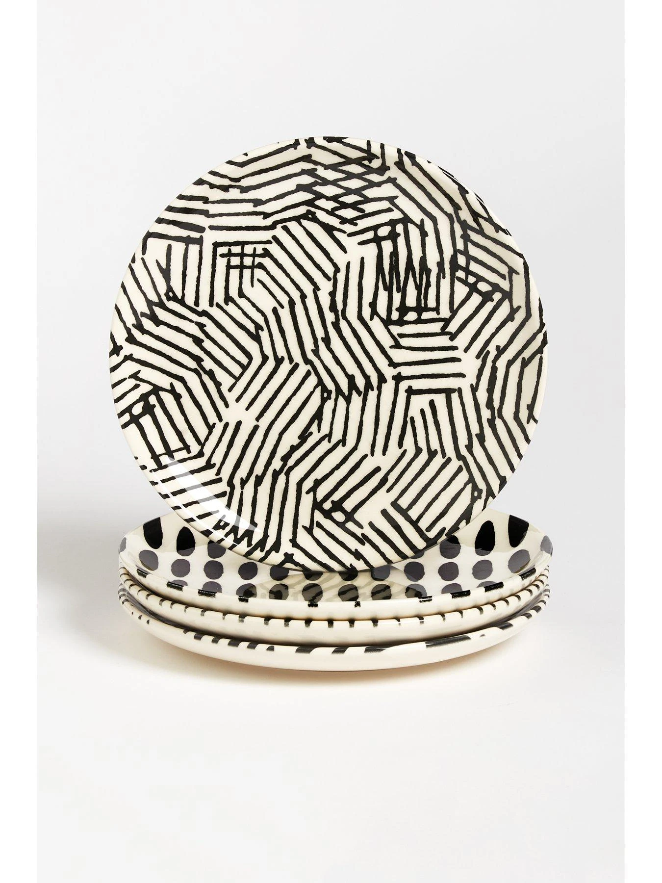Mono Dash 4 Piece Side Plate Set in Monochrome