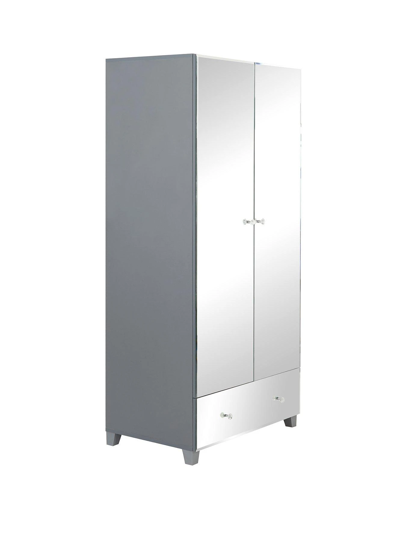 Just as fashionable as the outfits you’ll store in it, the doors and drawer front are decked in shiny bevelled mirrors that add a fabulous sense of light and depth to your space. Sparkly jewel-effect handles add a glam garnish, and the frame is available in white or grey colourways to match your room.