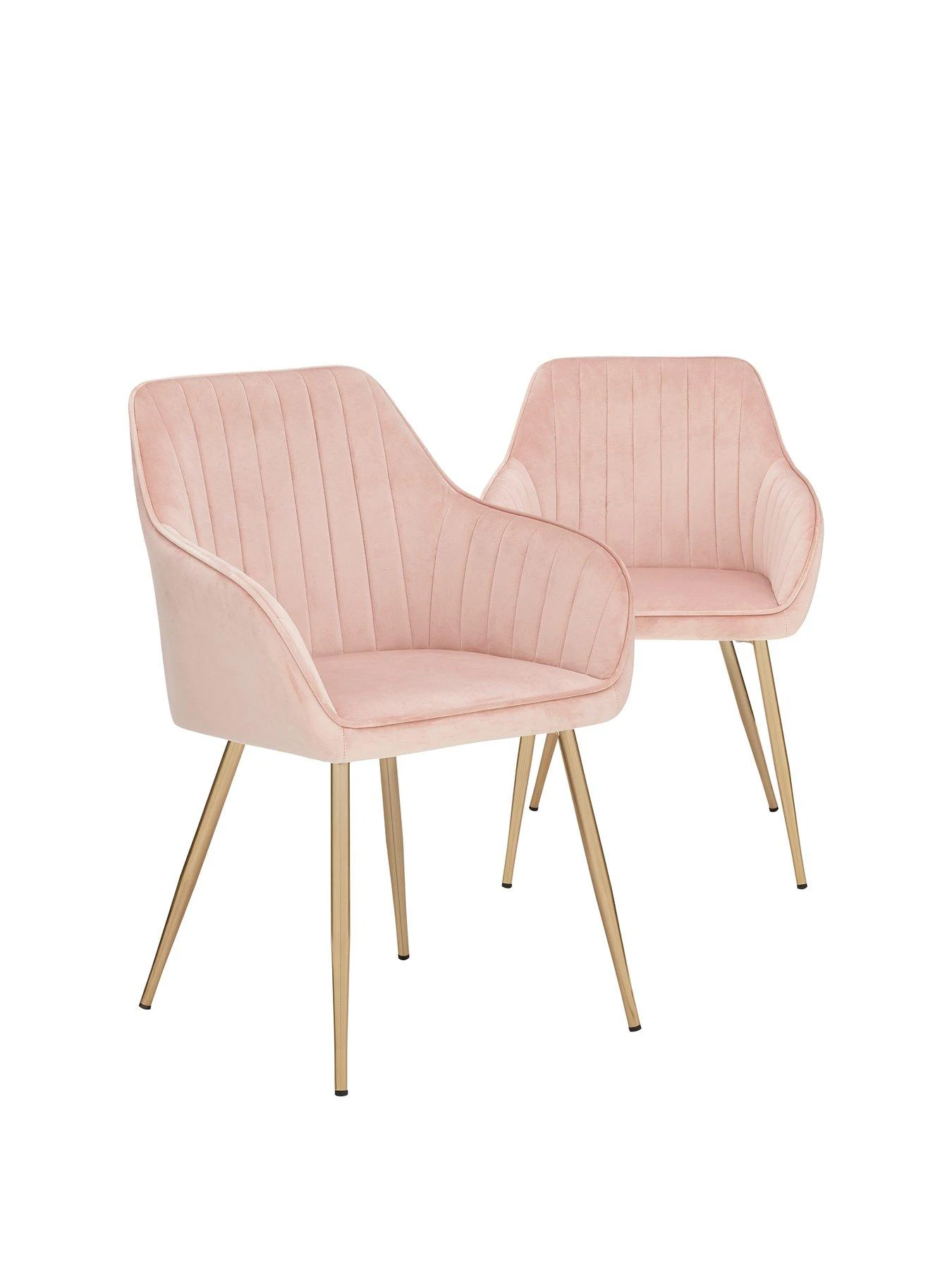 Wrapped in a soft and textural velvet, their sunny pink shade will put a pop of colour into mealtimes, and they sit on Scandi-style brass legs that give them an eye-catching mid-century modern vibe.
