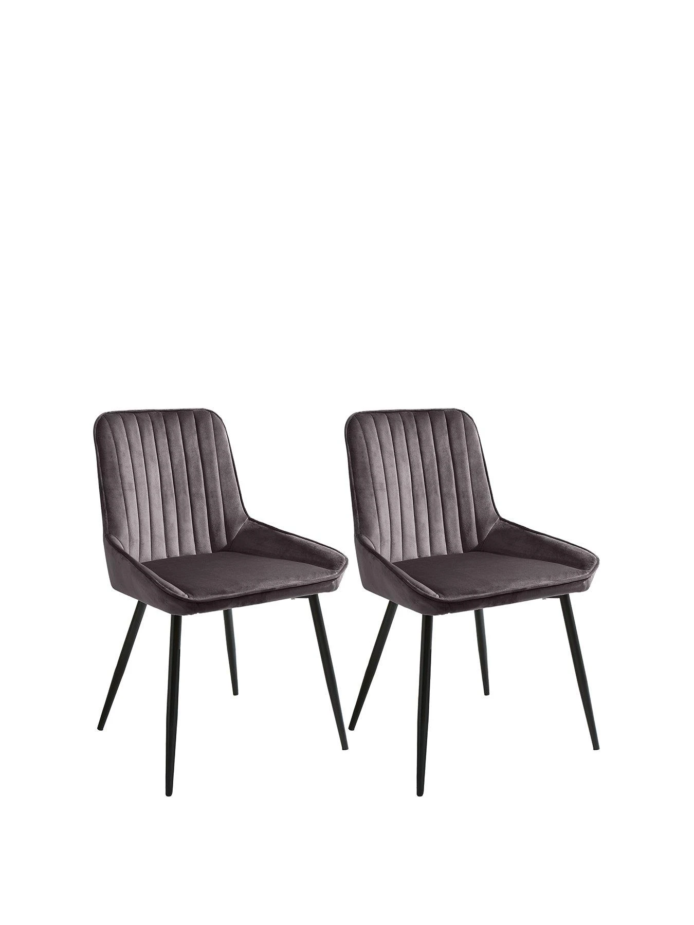 Give your dining table an update of comfort and style with this set of 2 Alisha chairs. With a contemporary silhouette, they’re wrapped in a soft charcoal velvet-effect fabric that flaunts a delectable texture.