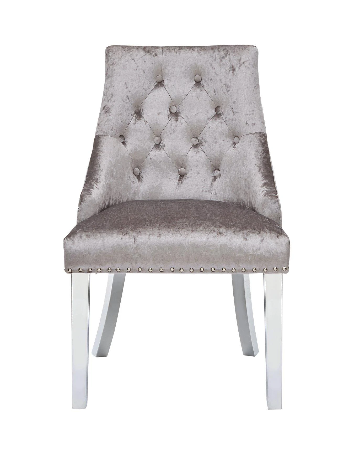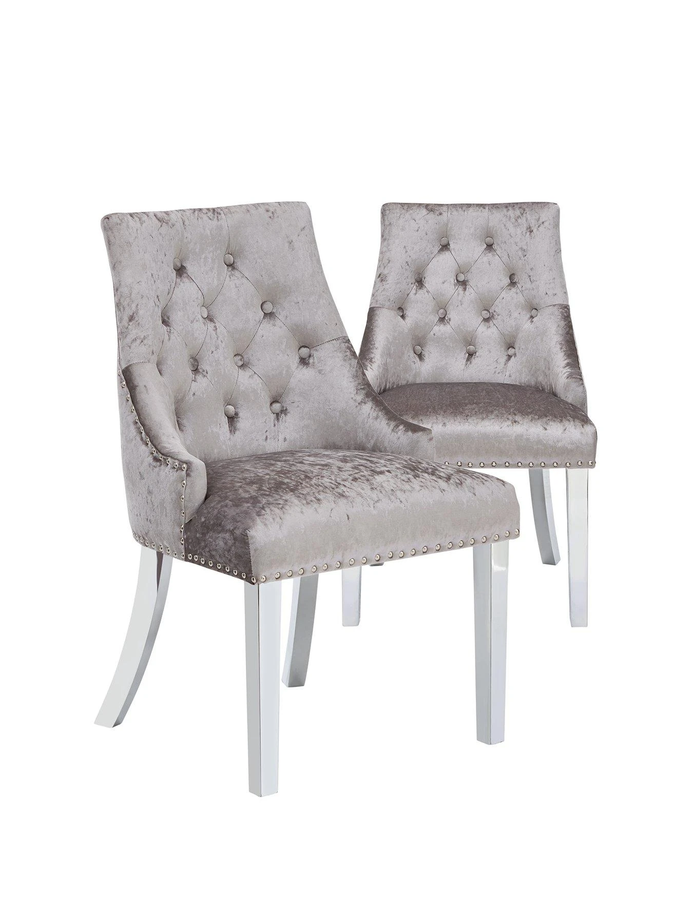 Pair of Warwick Crushed Velvet Dining Chairs in Silver/Chrome
