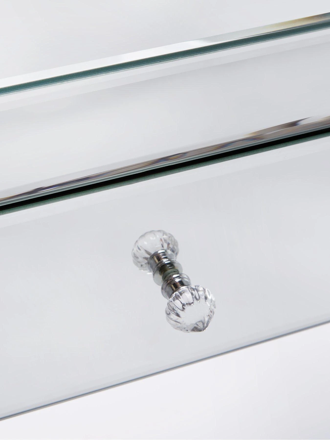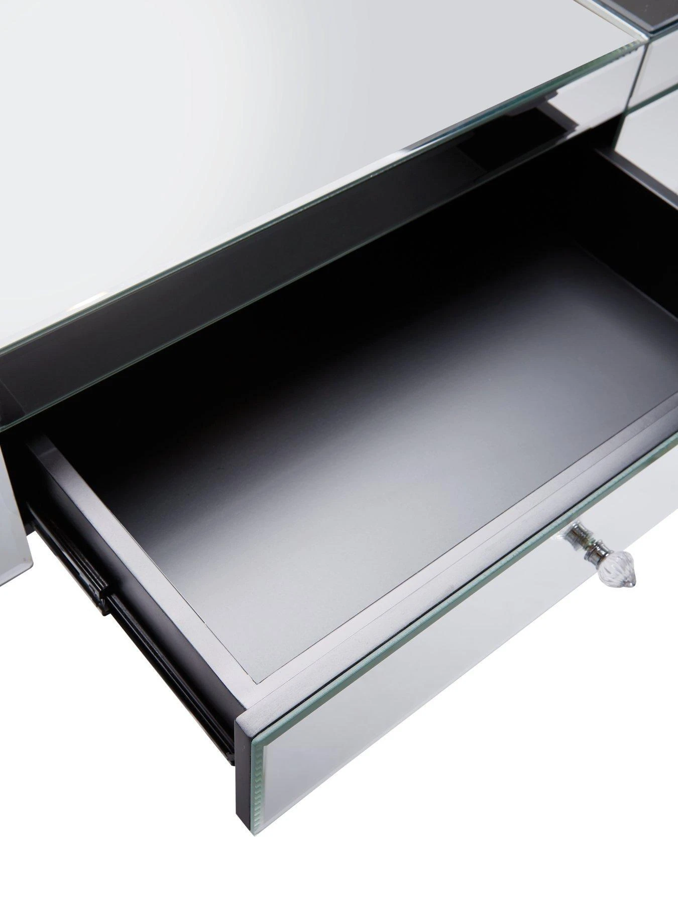 Not only does this help create a brighter, deeper space, but it also enhances the style and colours of your decor. A single storage drawer is fitted with easy-glide drawer runners and accented with a sparkly crystal-effect handle. Thoughtfully finished with bevelled edges and easy glide runners.