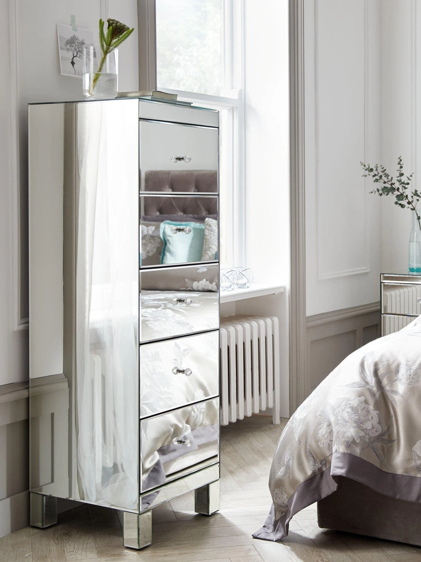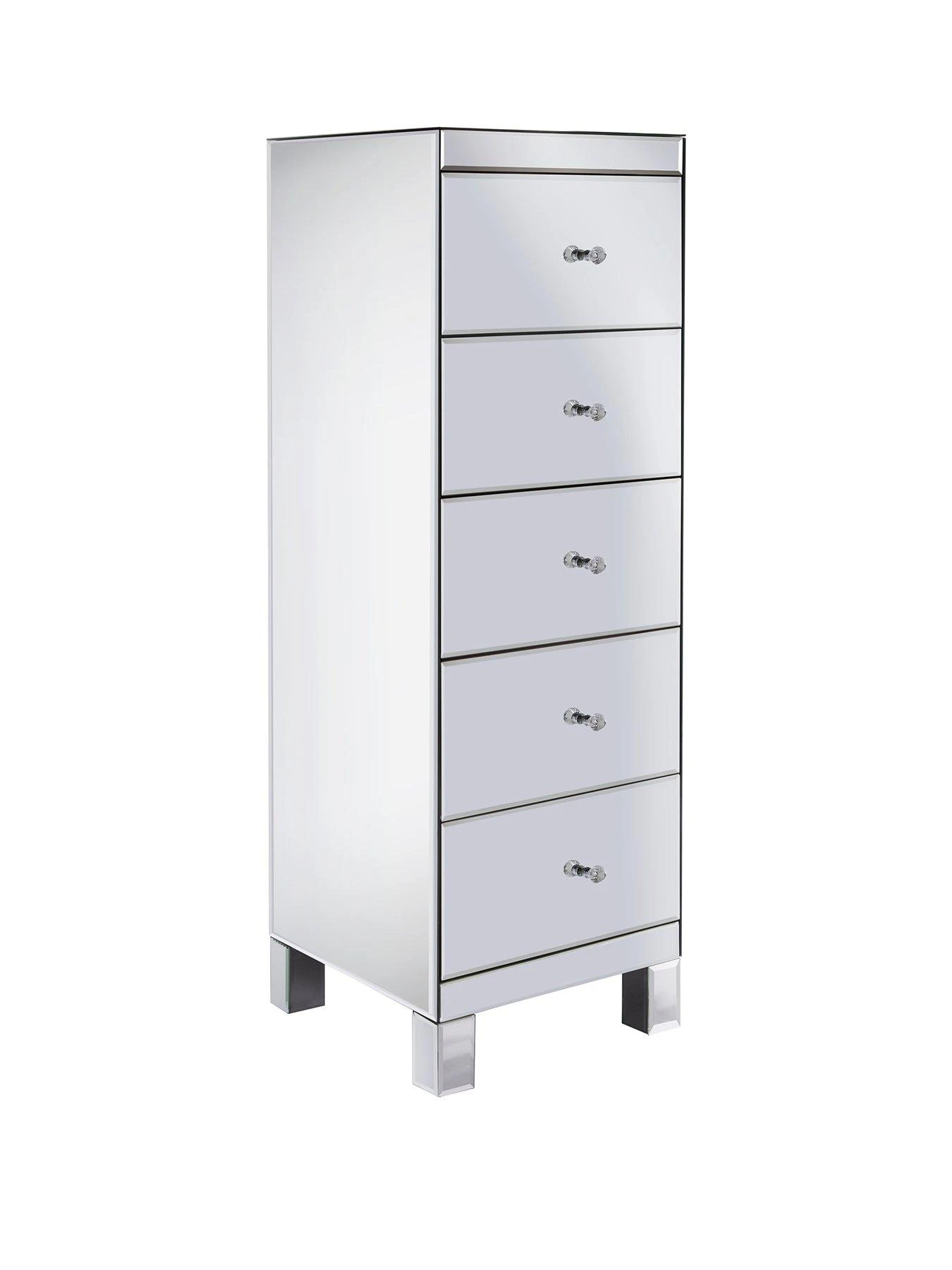 Parisian Ready Assembled Mirrored Tall Chest of 5 Drawers