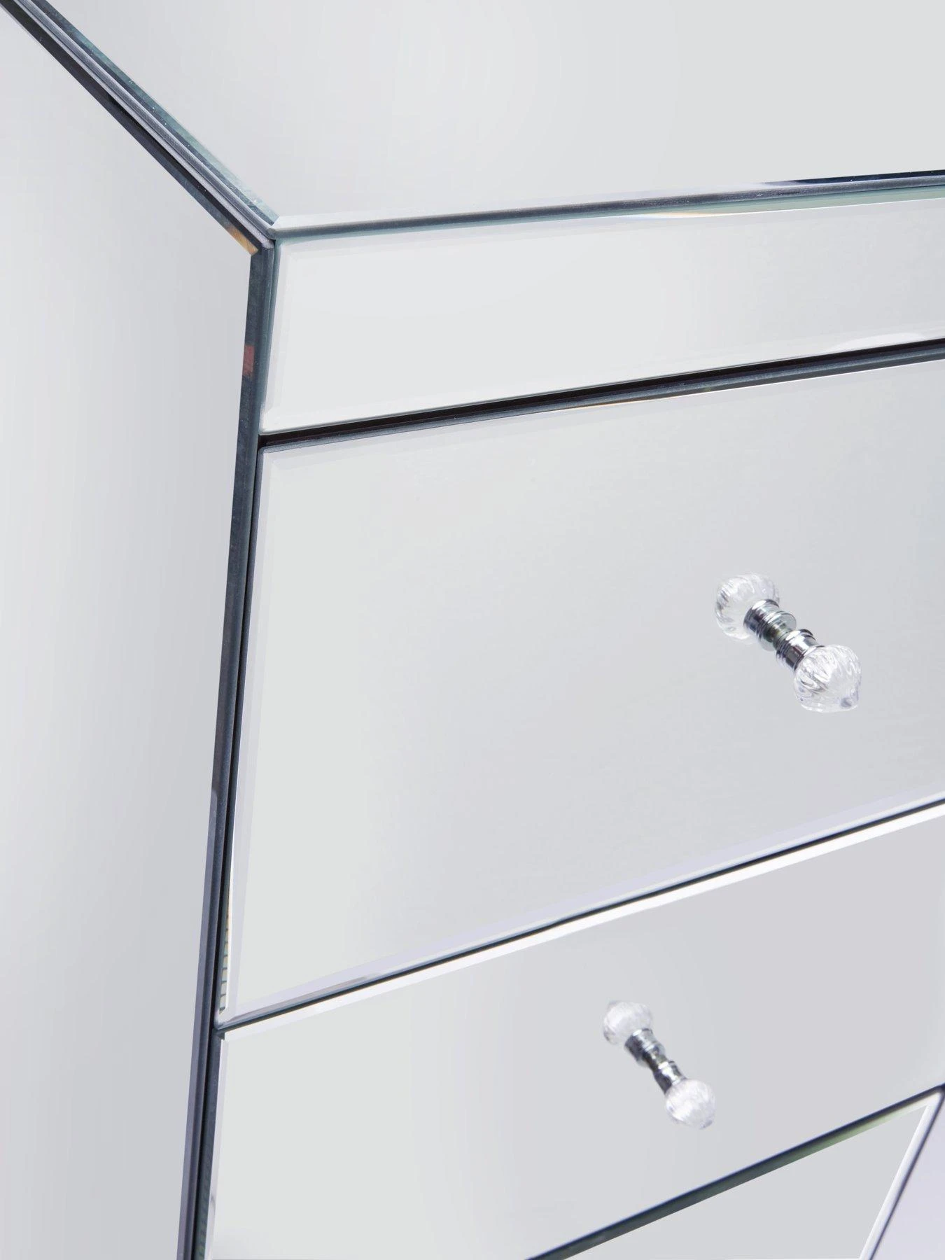 For added indulgence, the five drawers are accented with sparkly crystal-effect handles, and it’s thoughtfully finished with bevelled edges and easy-glide metal drawer runners.