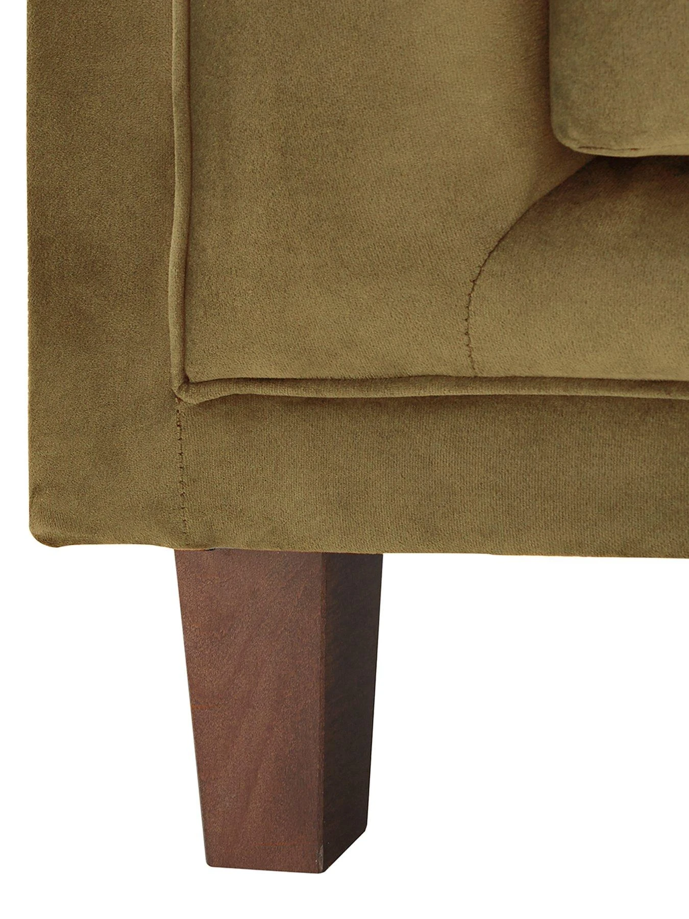We love the vertical stitching to the back that echoes the straight lines of the sofa’s shape, as well as the delicate piping that separates the frame and the padding. Modern angled timber feet look great against your laminate or carpet and raise it off the floor for easy cleaning underneath.