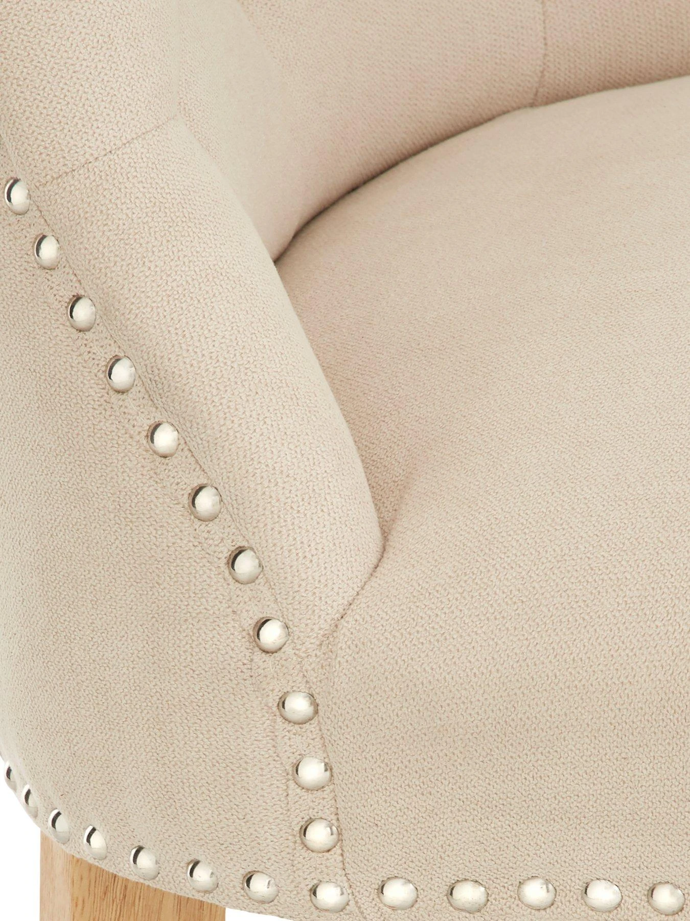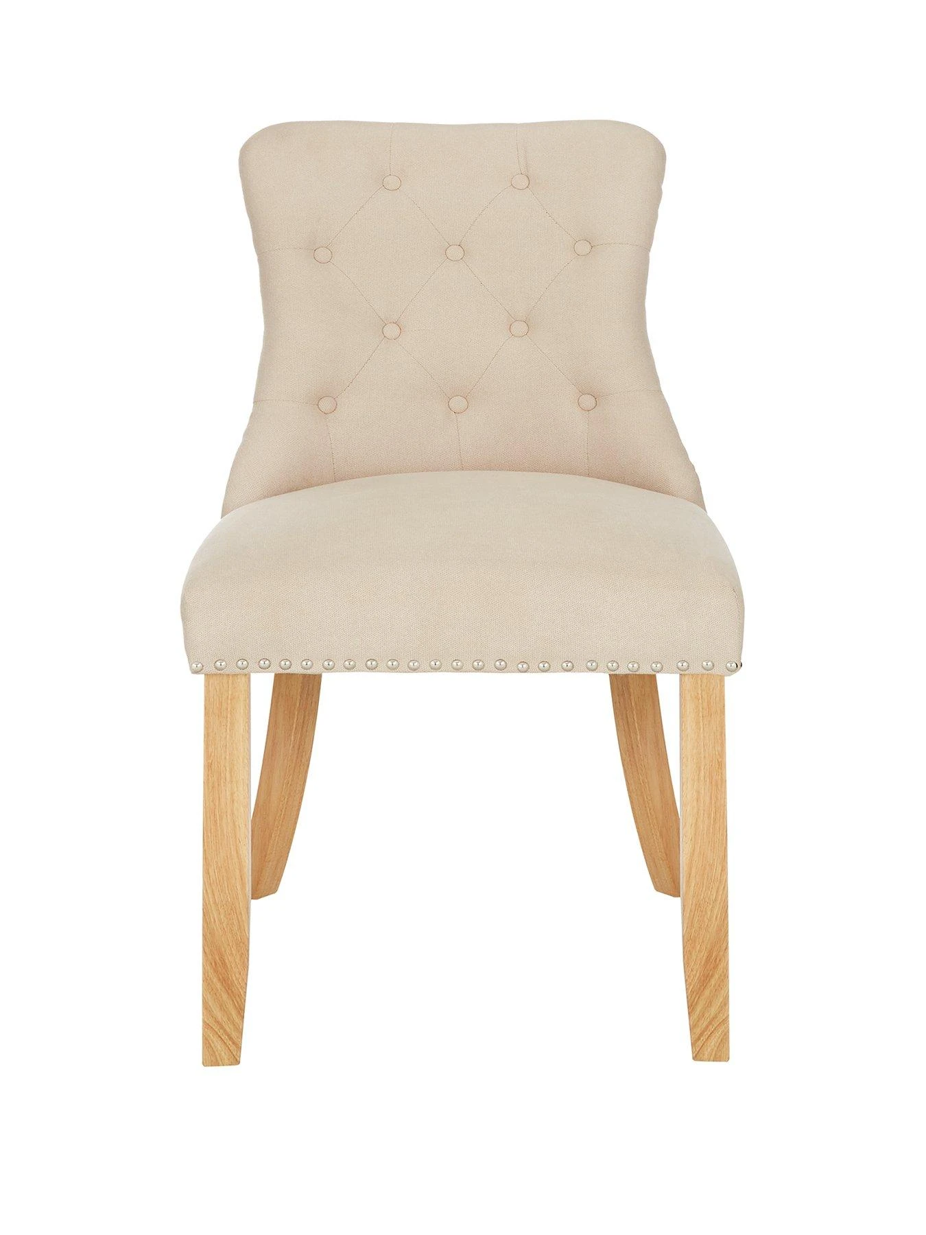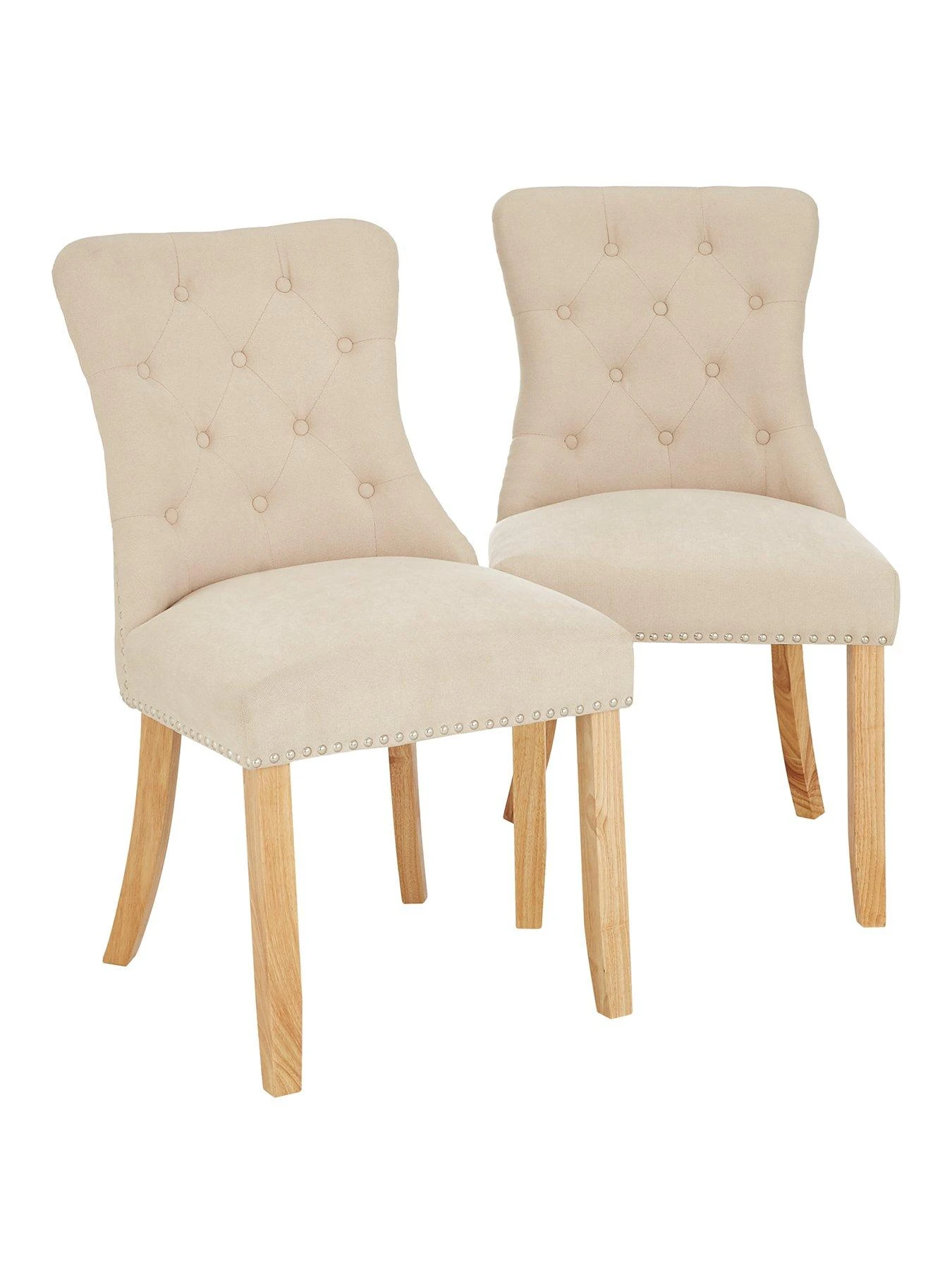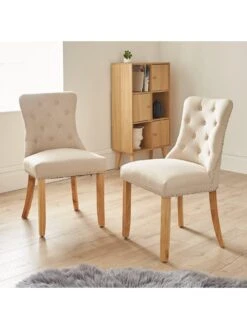Add elegance and comfort to your dining table with this set of 2 Warwick chairs. Wrapped in a sumptuous chenille fabric that comes in a soft natural hue, they’re detailed with decorative buttons to the back, as well as silver studs for a sprinkle of shine.