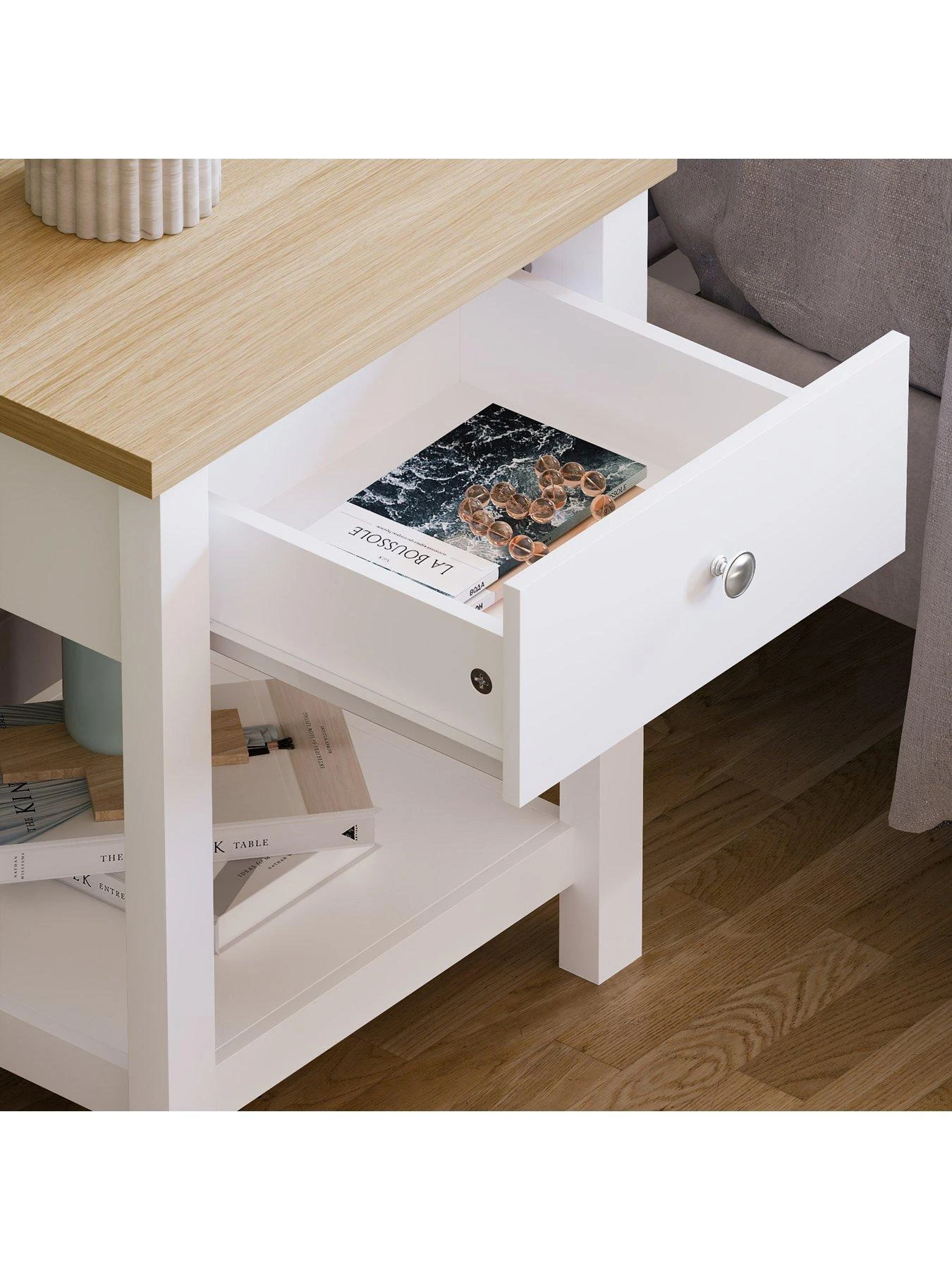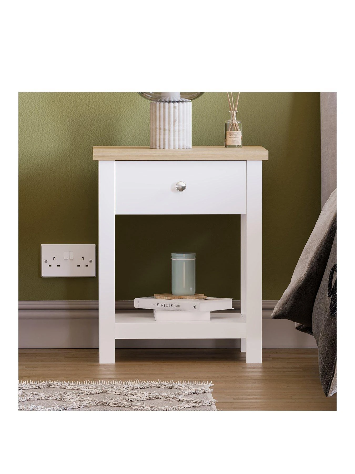 Part of Vida Designs’ Arlington collection, this side table features a smooth white finish that’s contrasted by a wonderfully grained oak-effect top – ideal for creating a country cottage feel in your room.