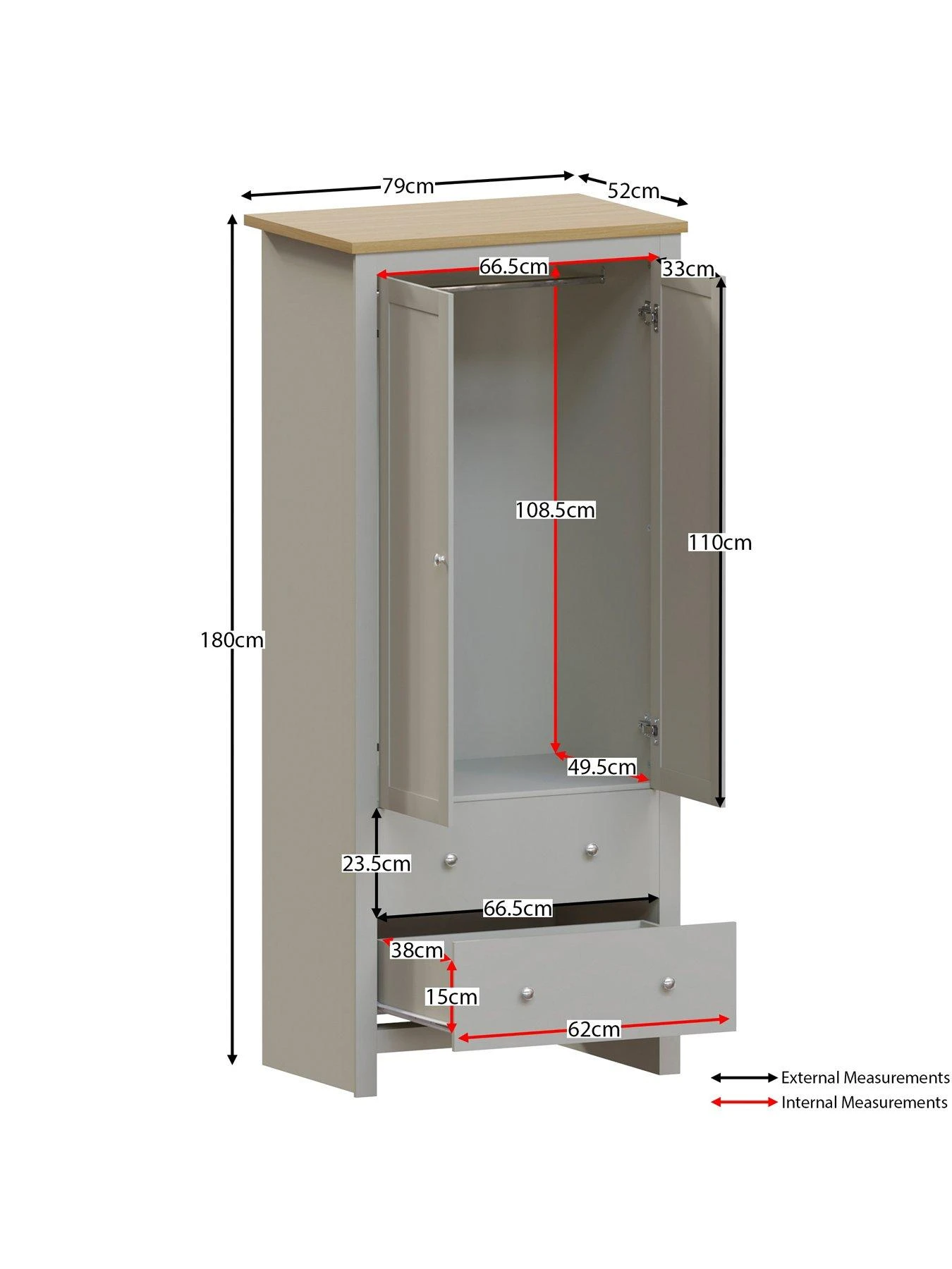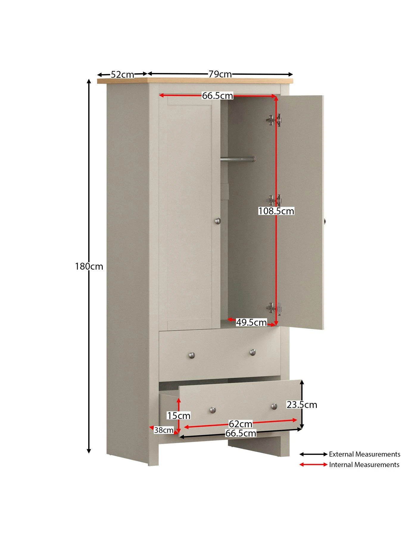 Height 180, Width 79, Depth 52 cm