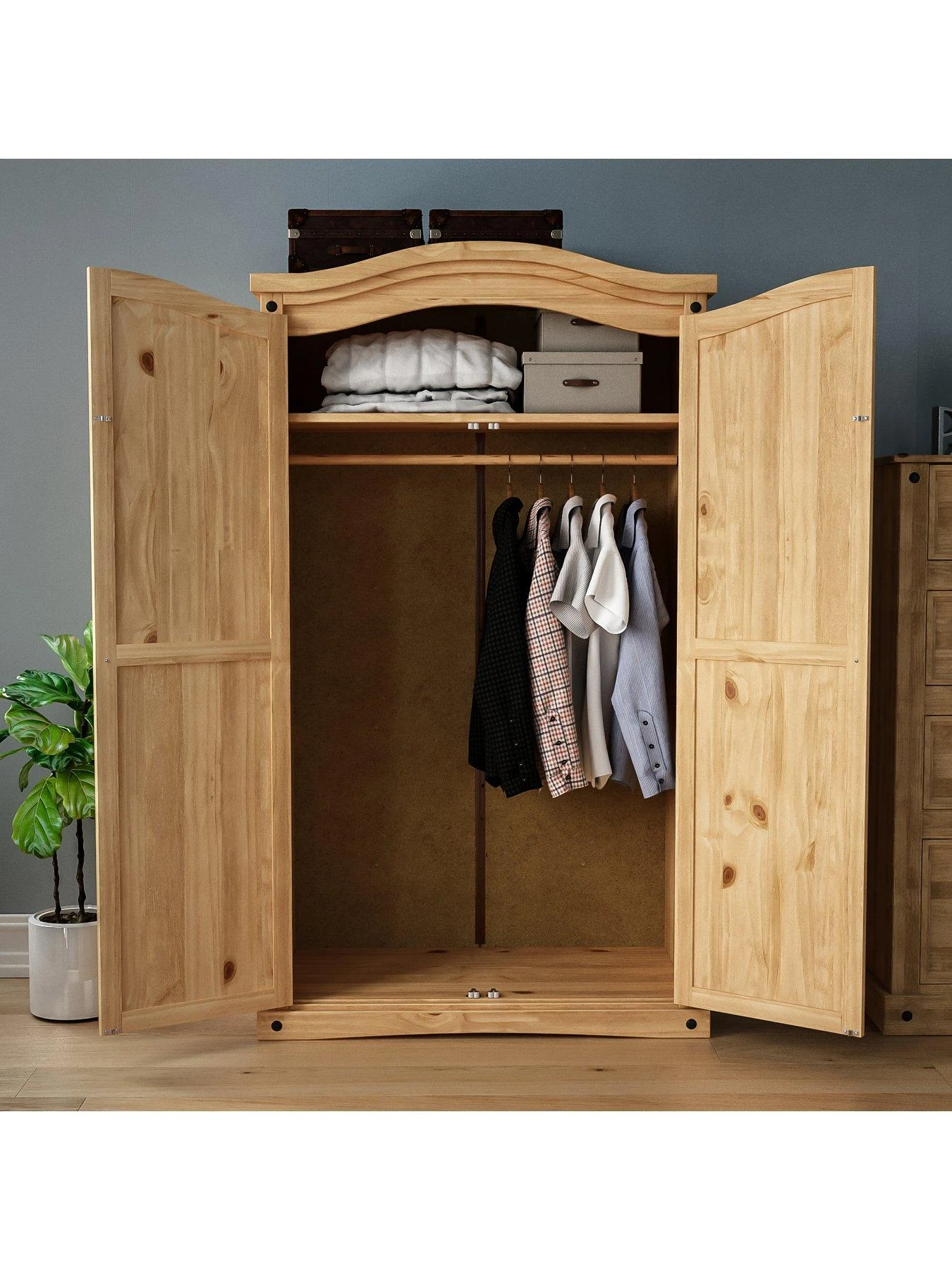 Corona 2 door wardrobe is a stunning piece of furniture from our traditional Mexican style Corona range. The wardrobe has two wooden doors, the whole item is made of strong pine wood making the wardrobe durable and long lasting.